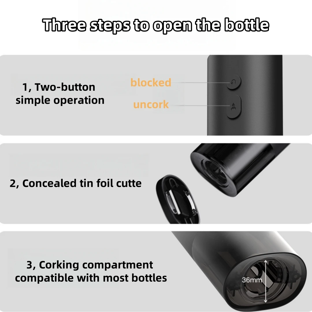 The cork can be opened quickly in 10 seconds, and the bottle can be opened 170 times when fully charged, and it is not easy to break the cork and drop slag. Enjoy sharing a good bottle of wine.
