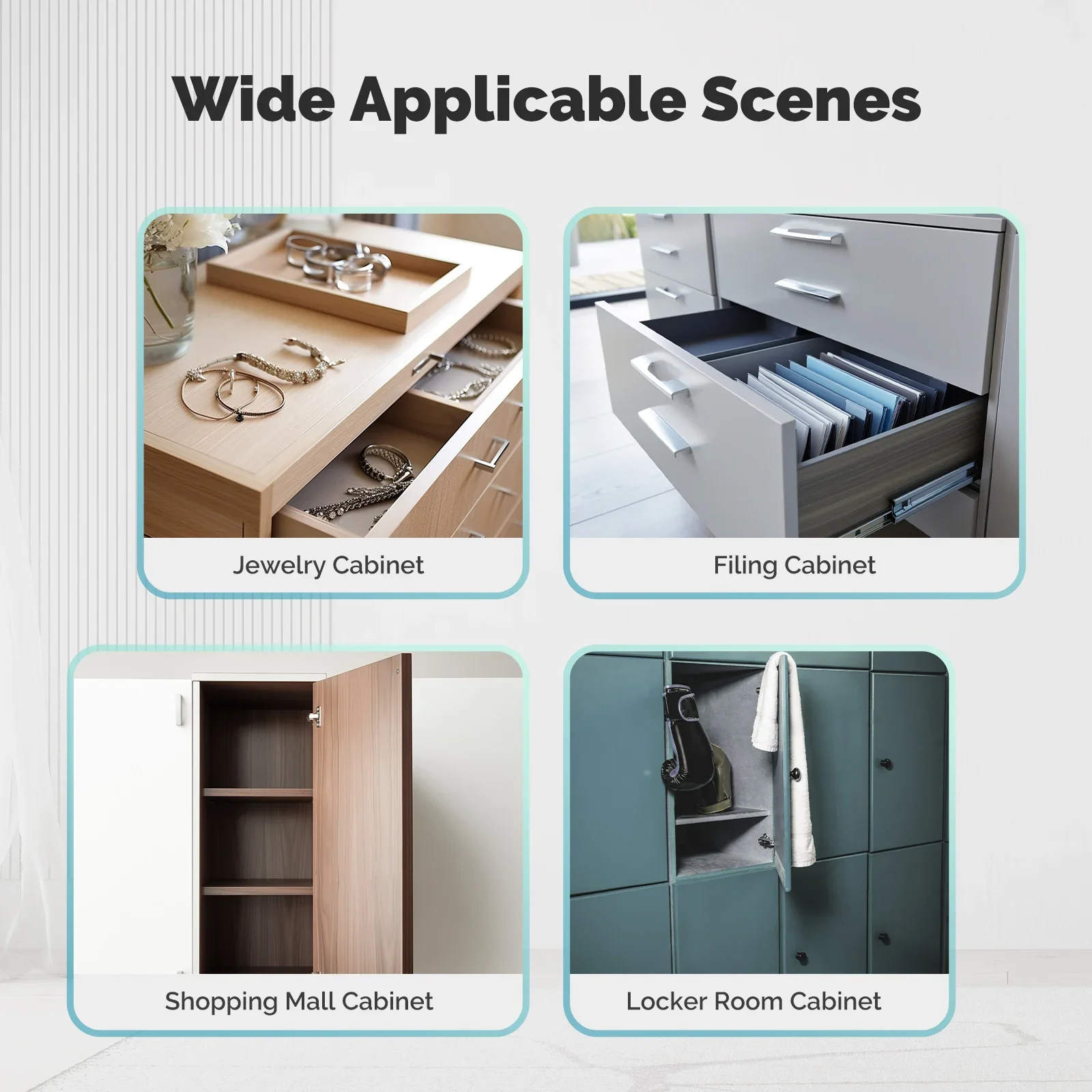 The cabinet lock features a body material of ABS, renowned for its exceptional wear resistance and rust-proof properties, ensuring reliable installation and maximum protection for security of cabinet interiors.