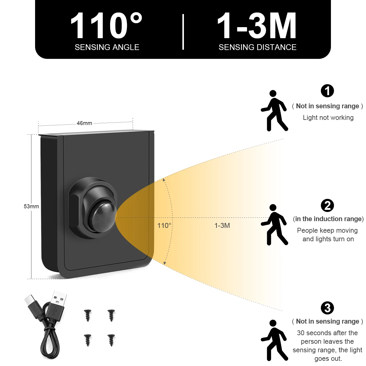 The Under Cabinet LED Strip Lights are an excellent addition to your home or office lighting setup. These versatile lights can be installed easily using the included 3M sticker, making them perfect for use in your kitchen, pantry, bedroom, wardrobe, or closet. With Portable PIR motion sensor, you can control the lights without ever having to touch them, And it more flexible to stick anywhere you like,simple and easy to instation.