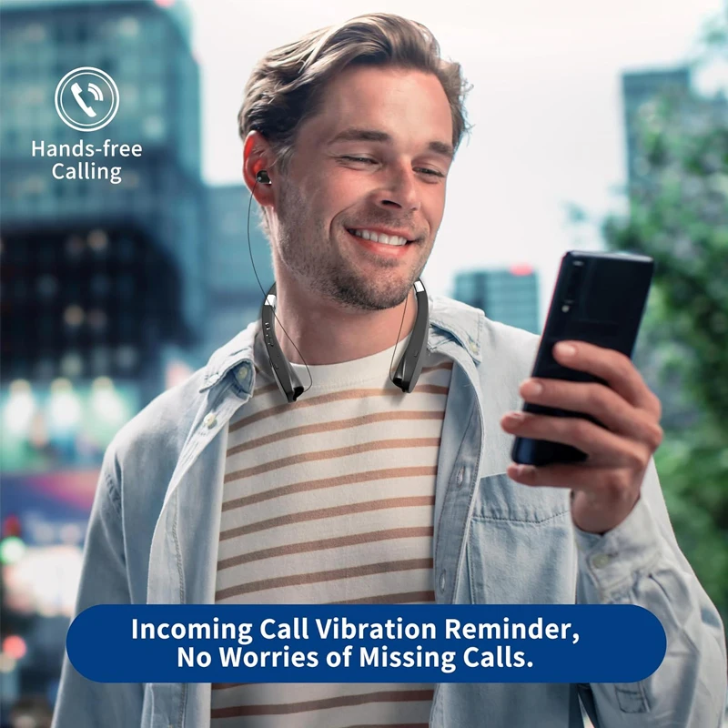 【Neckband Design】– Around-the-Neck wearing design with perfect Body-Contoured fit. Made of environmental ABS+PC material, light and soft to wear comfortably, perfect for long time wearing no matter in outdoor activities or in office.