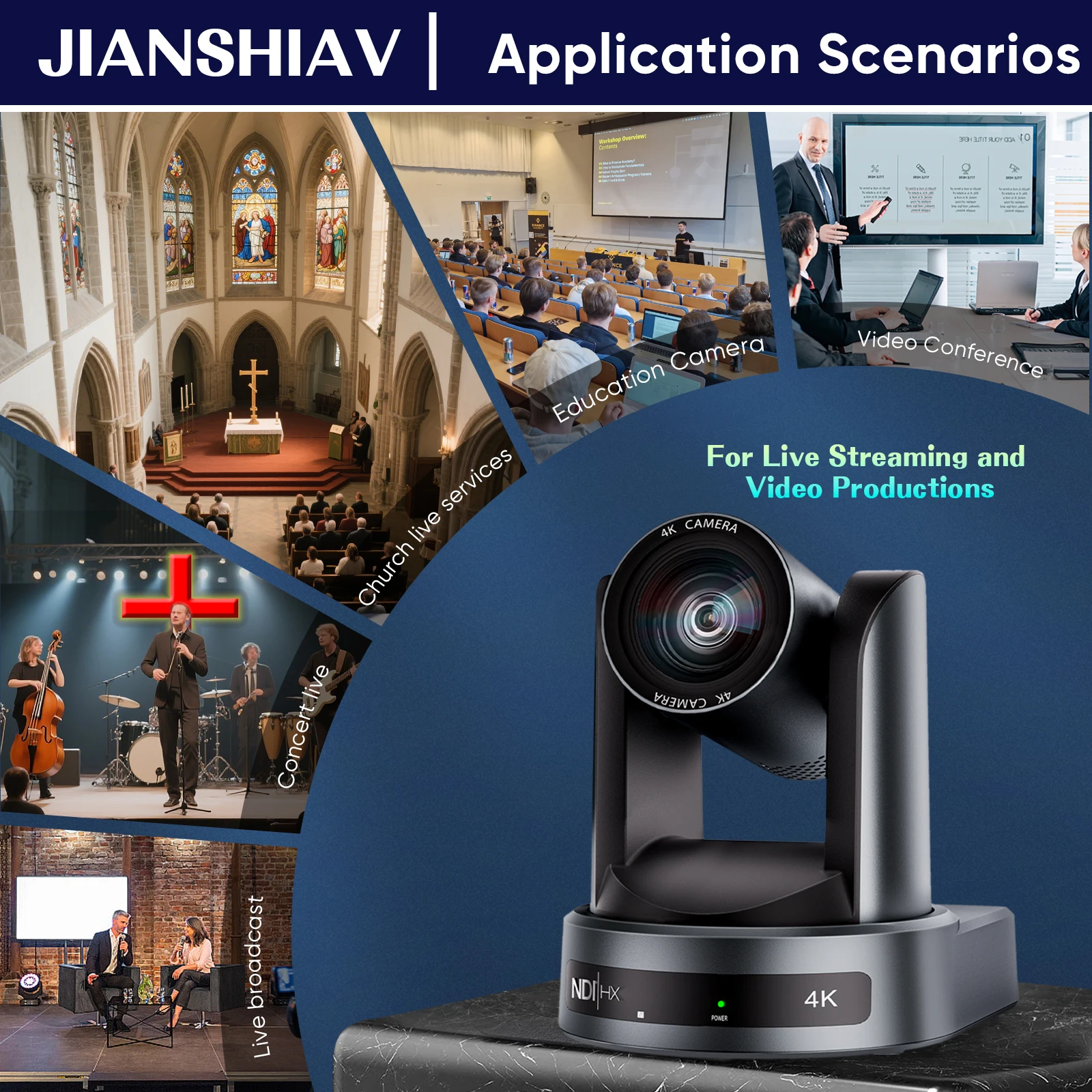 4K 1080P NDI Conference Camera PTZ Video Live Streaming SDI HDMI USB IP POE 10X 20X zoom for Church NetMeeting Broadcast Youtube