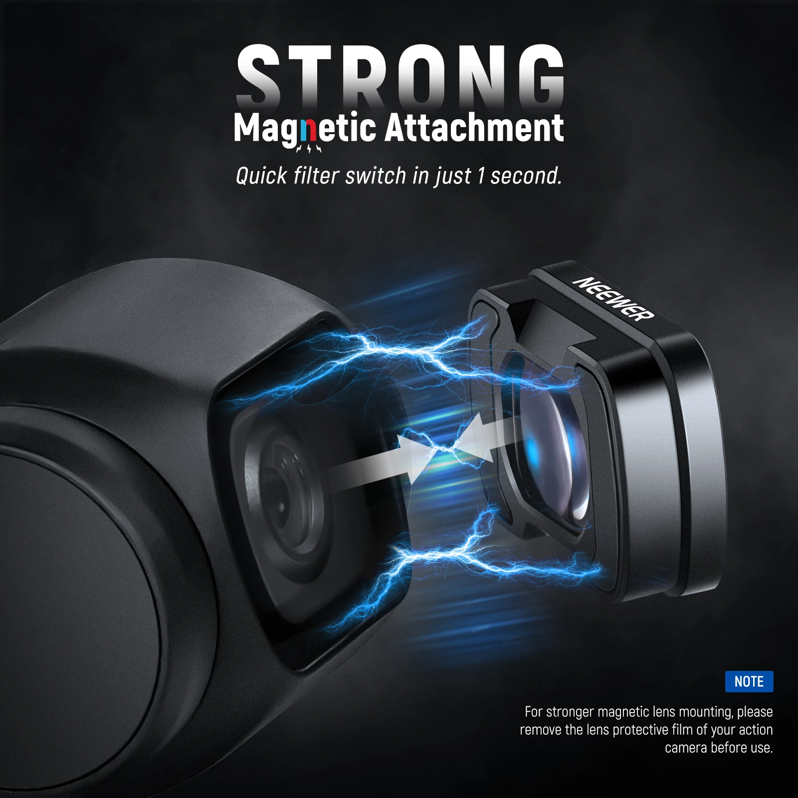 【Tailored for OSMO Pocket 3】 Seamlessly compatible with DJI OSMO Pocket 3 action camera, this NEEWER LS-45 Magnetic Wide Angle Lens, enhances your creativity and overall photography experience