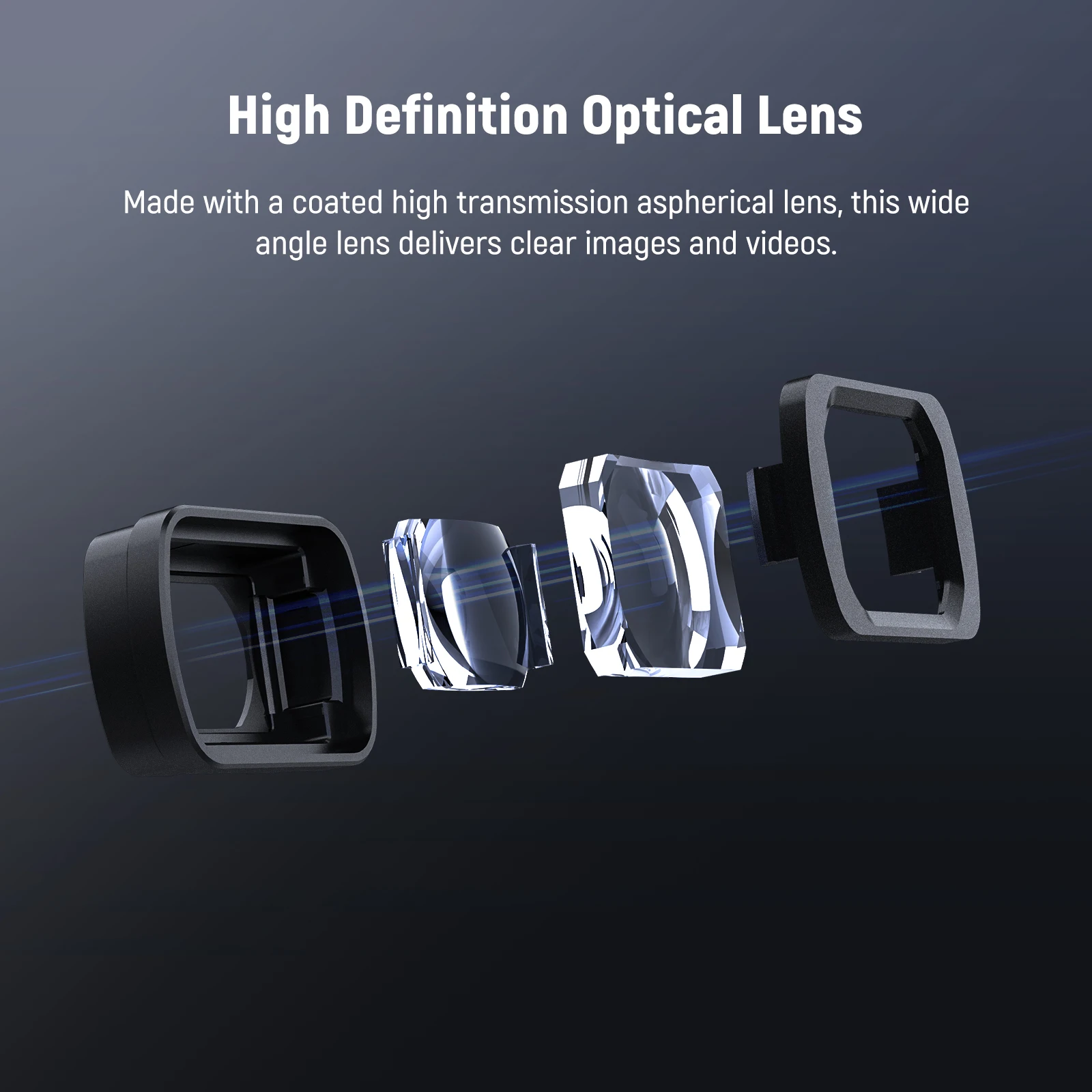 【High Definition & Lightweight】 Made with a coated high transmission aspherical lens, this wide angle lens delivers clear images and videos while remaining lightweight at 0.1oz (3.9g)