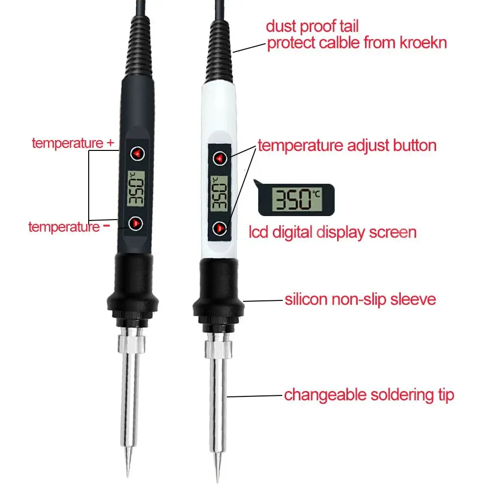 • LCD Display :The soldering iron has an LCD display that shows the temperature and other settings, making it easy to monitor and adjust the soldering process.