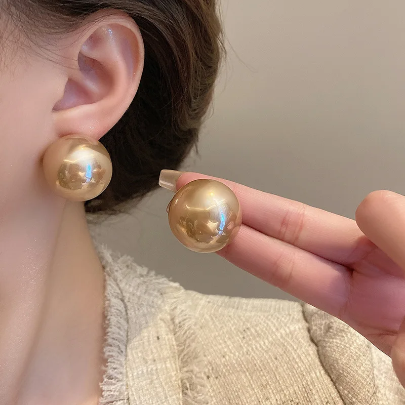 New Large Round Pearl Earrings French High-End Feeling Light Luxury Earrings Fashion Single Item Women’s Wedding Jewelry Gifts
