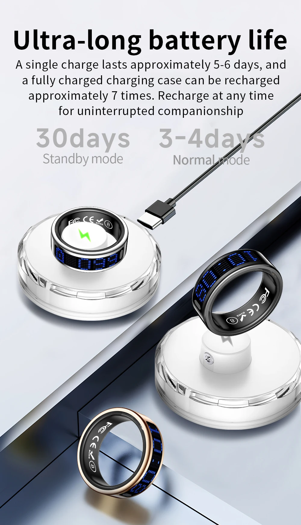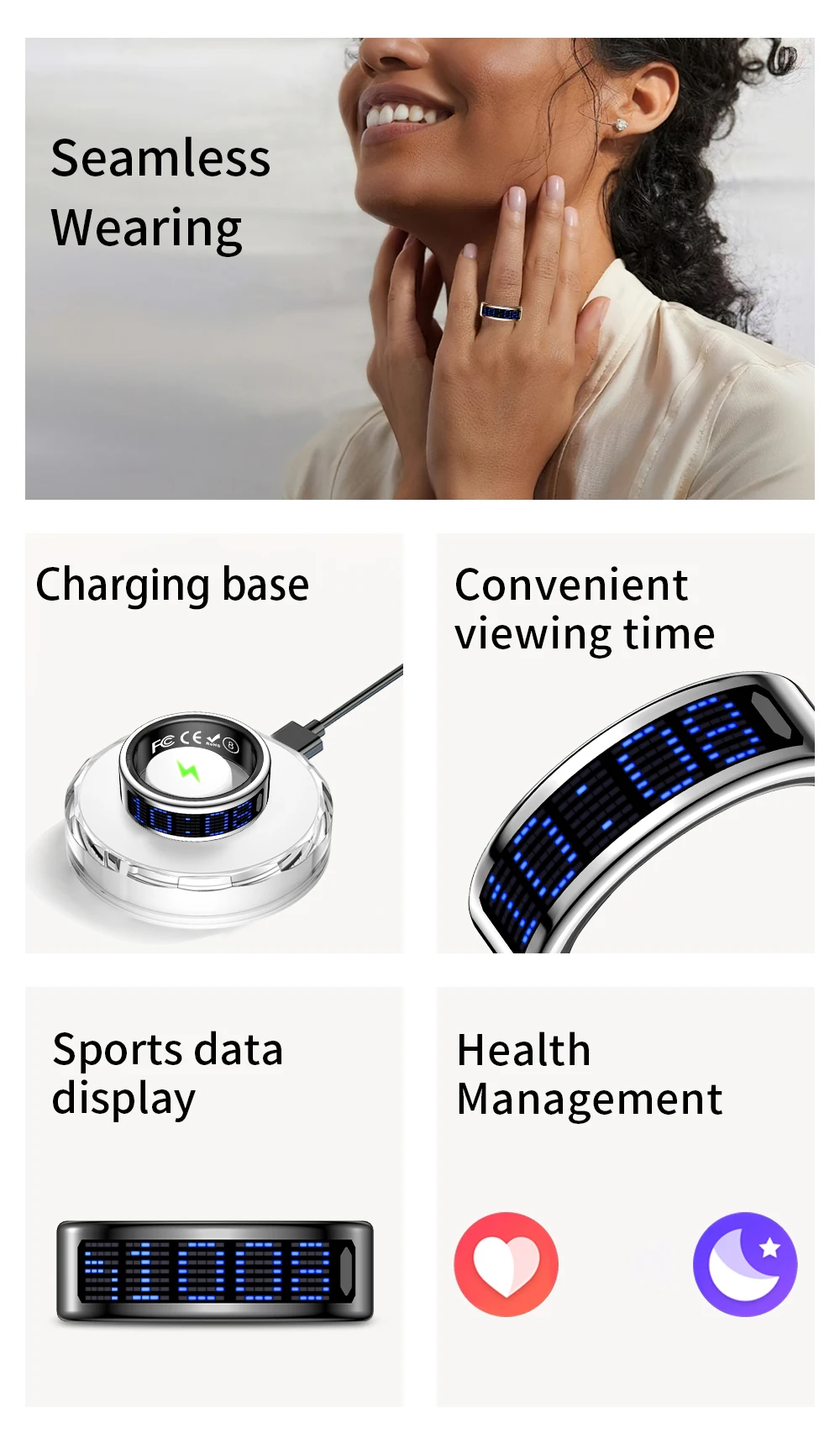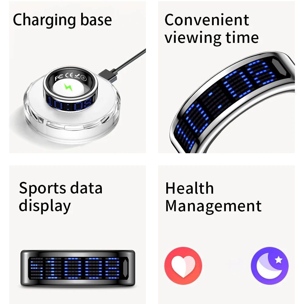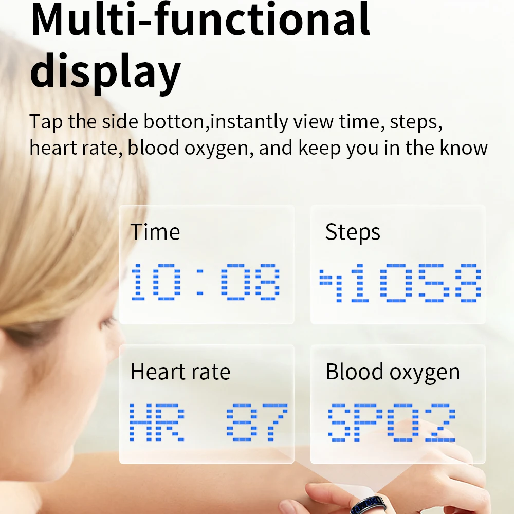 New Ultra-thin Lightweight Smart Ring Multi-functional Display Heartrate Health Caller ID Reminder Motion Detection Waterproof