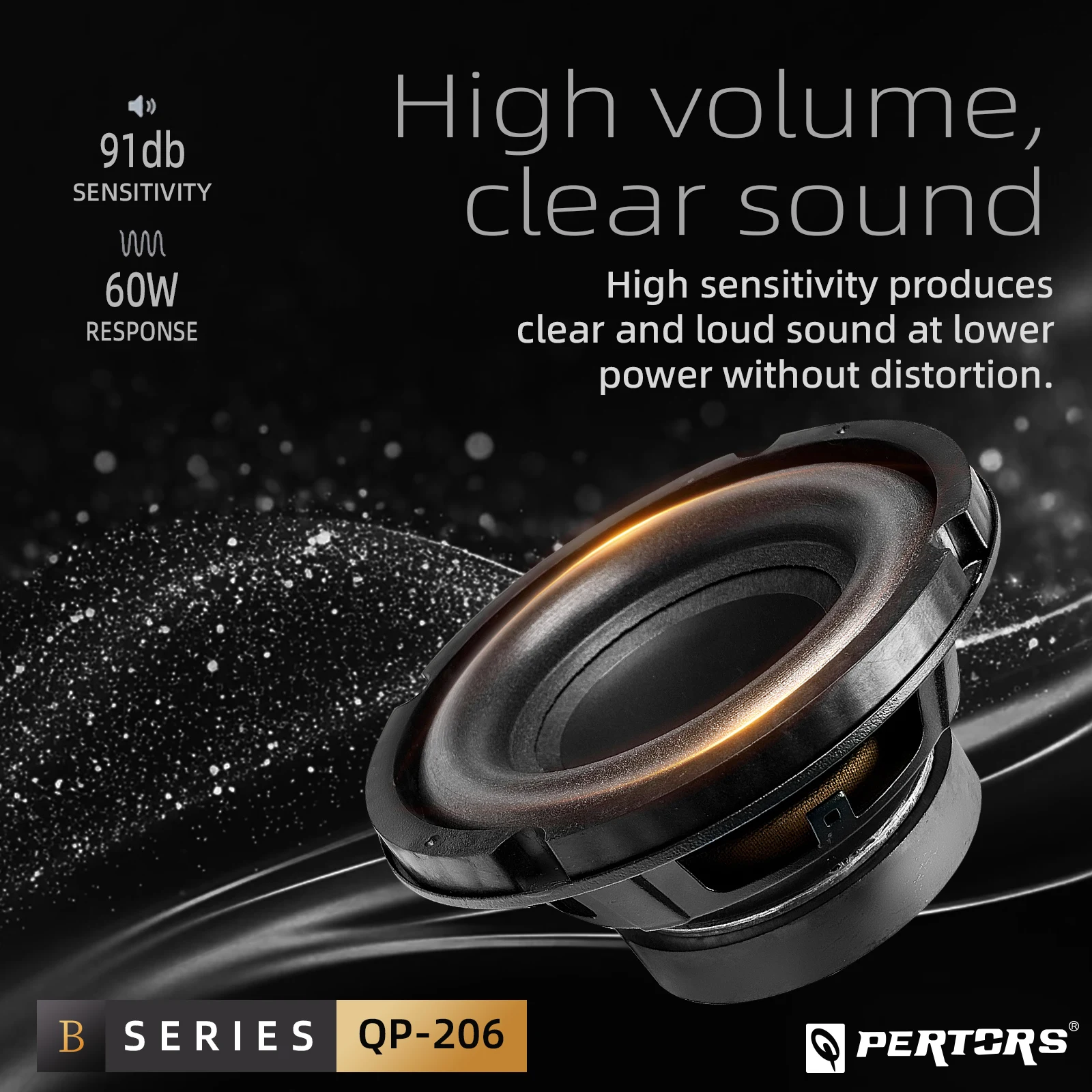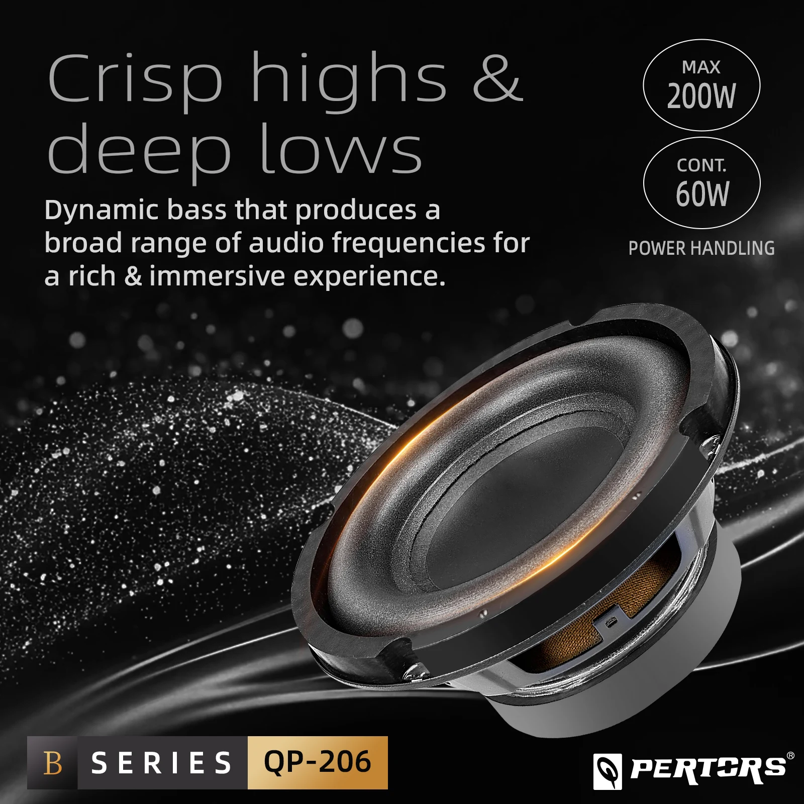 Experience powerful bass with the Q-PERTORS 6.5 Inch Bass Speaker, capable of reaching up to 200W max output.