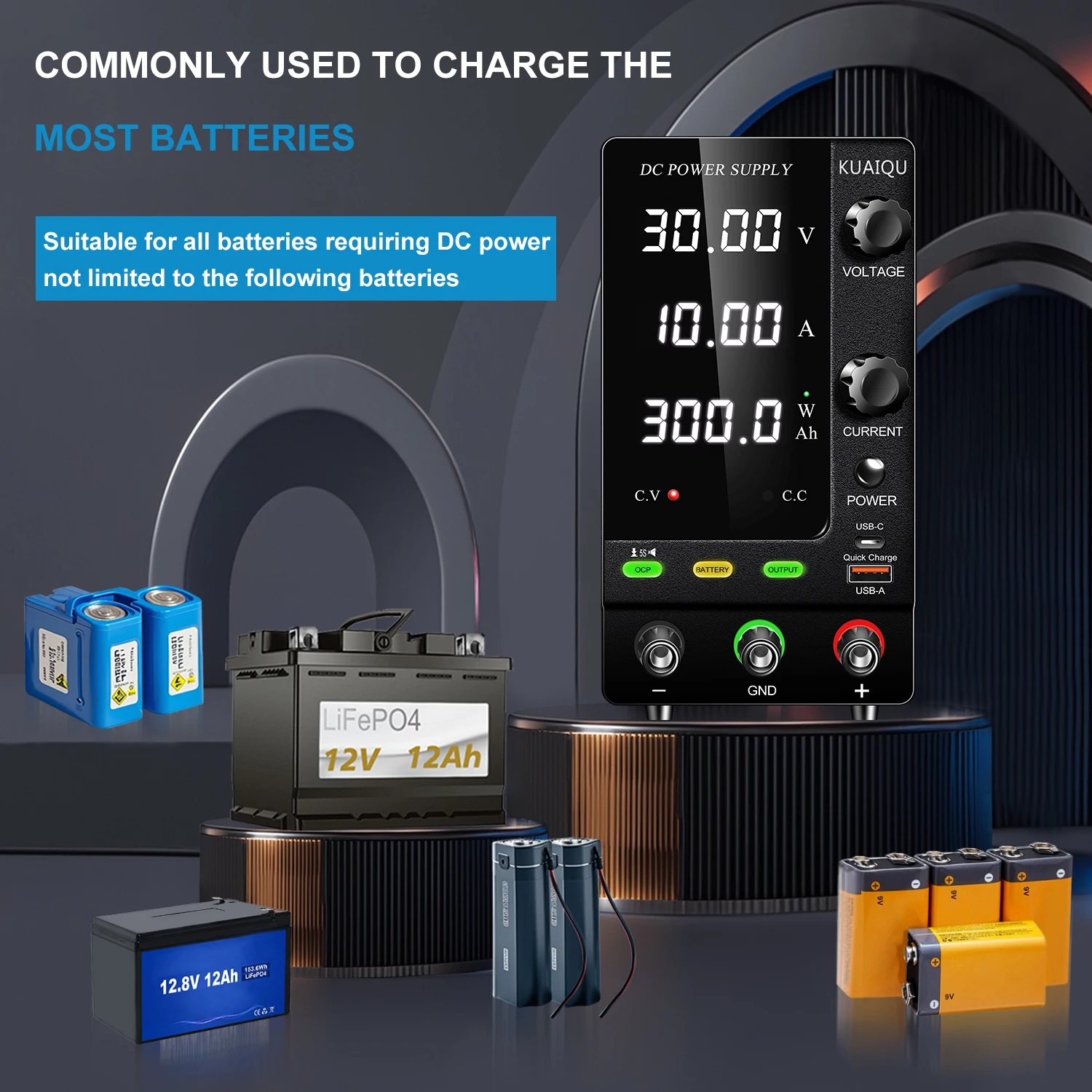 🔥CE & FCC Certification, Multiple Protection, Various Application: Lab power supplies have passed CE & FCC Certification. 30V DC power supply has multiple protections: overvoltage protection, overcurrent protection, overheating protection, over power protection, short circuit protection, leakage protection. DC power supply is suitable for LiFePO4 battery charging, arduino project, anodizing, laboratories, schools, electronic maintenance , electrolysis, electroplating, lamp test, DIY, etc.