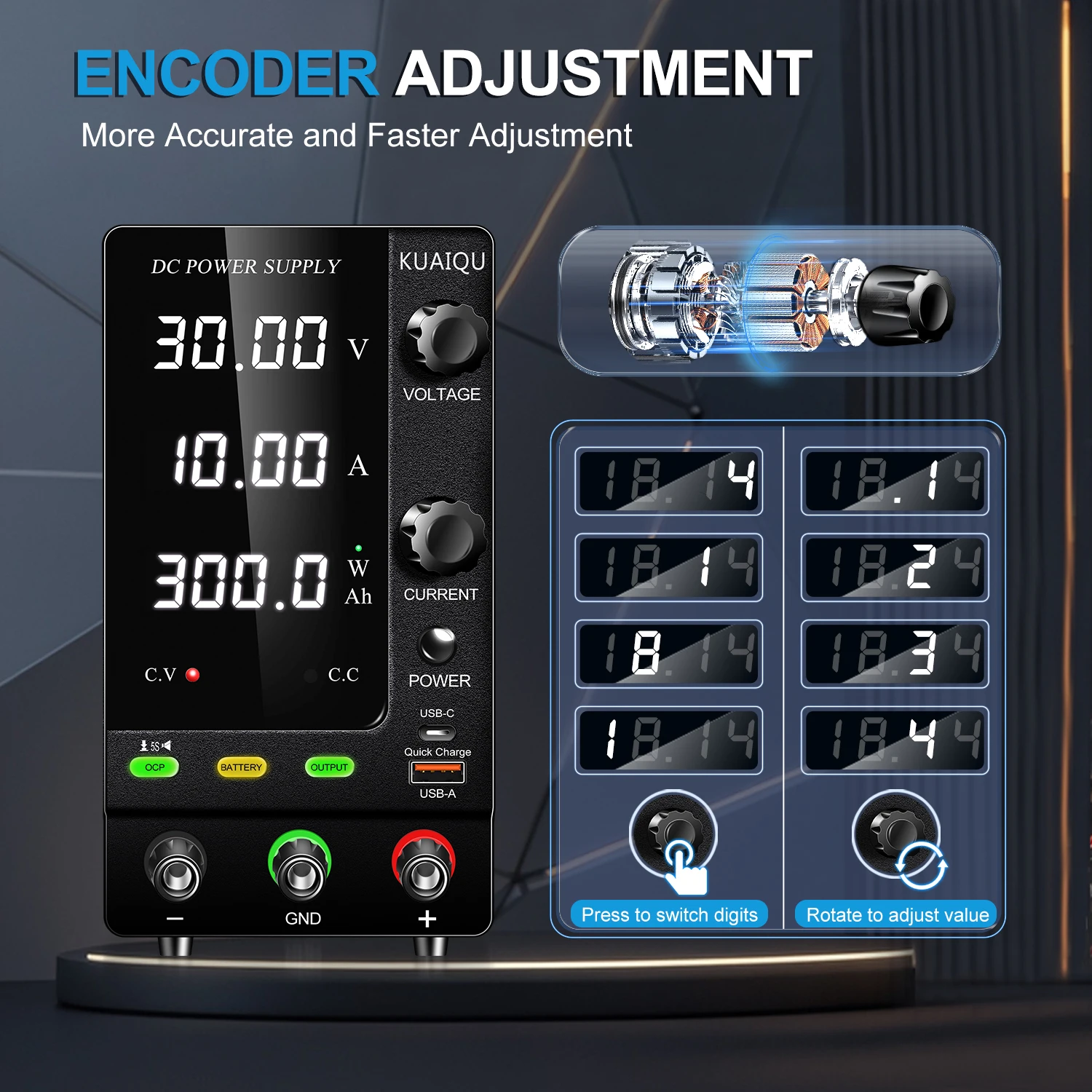 🔥Upgraded High-precision encoder knob: Just “set” Voltage and Current instead of “adjust”. You can press the Voltage and Current encoder knob to select the Digit you want to adjust, then rotate the knob to set the value from 0-9. Each Digit can be set easily by the accurate encoder knob. The encoder switch replaces the potentiometer switch, making your work easier, more accurate and efficient.
