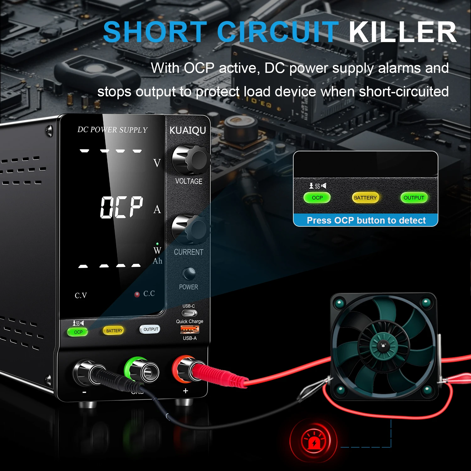 🔥【Multi-protection, Color Screen】 DC power supply variable have multiple protections for safety and durability. Current overload protection, overheating protection, overvoltage protection and so on. The color screen clearly identifies voltage, current and power.