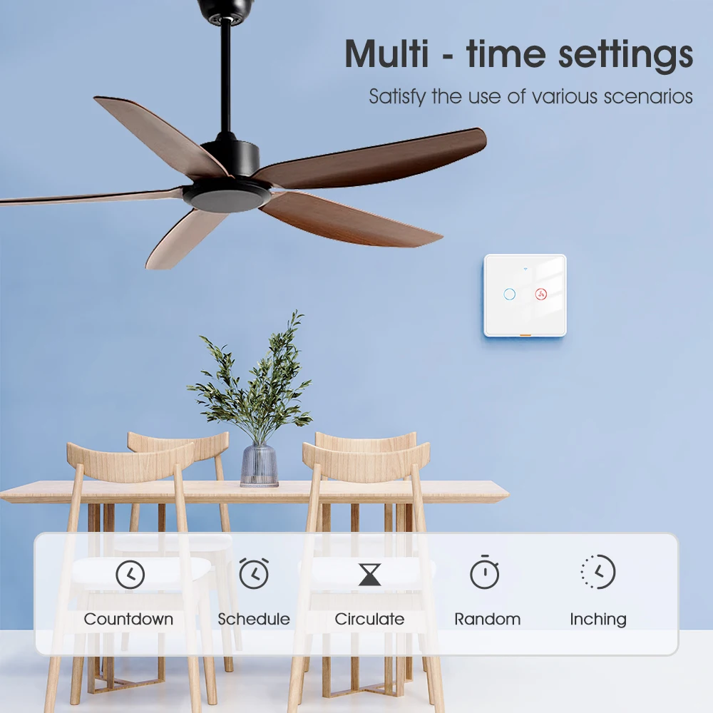 【Set timing and countdown】 Turn on and off the fan or light at the set time.