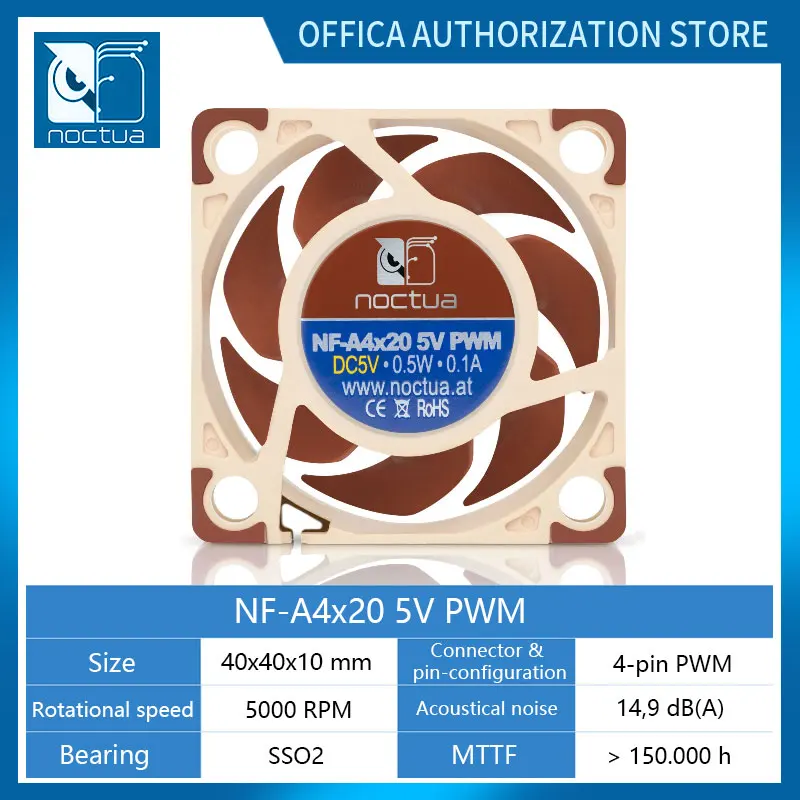 Noctua NF-A4x20 5V 4pin PWM Fan 40x40x20mm Computer Case Fan PWM Intelligent Temperature Control Ultra Small Fan