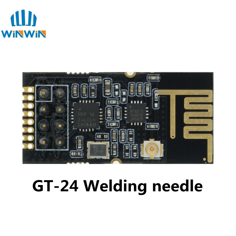 The GT-24 module is a 2.4GHz, 100mW, high speed (up to 2Mbps airspeed), high stability, industrial-grade wireless transceiver integrated data transmission module. The module comes with a high-performance PCB antenna, precise impedance matching, and the nRF24L01P RF chip, which has higher reliability, more power levels, and longer transmission distance and lower power than the nRF24L01. In addition, the RFX2401 power amplifier chip is built in, and the built-in LNA has a receiving sensitivity of 10dBm and operates in the ISM band of 2.4GHz to 2.5GHz. The module has sufficient transmitting power, good spectral characteristics, small harmonics, small channel crosstalk, and ultra-small volume.