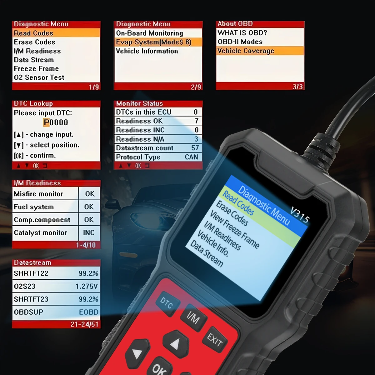OBD2 Scanner Diagnostic Tool, Vehicle Check Engine Code Readers with Reset & I/M Readiness ,Car OBDII/EOBD Diagnostic Scan Tool