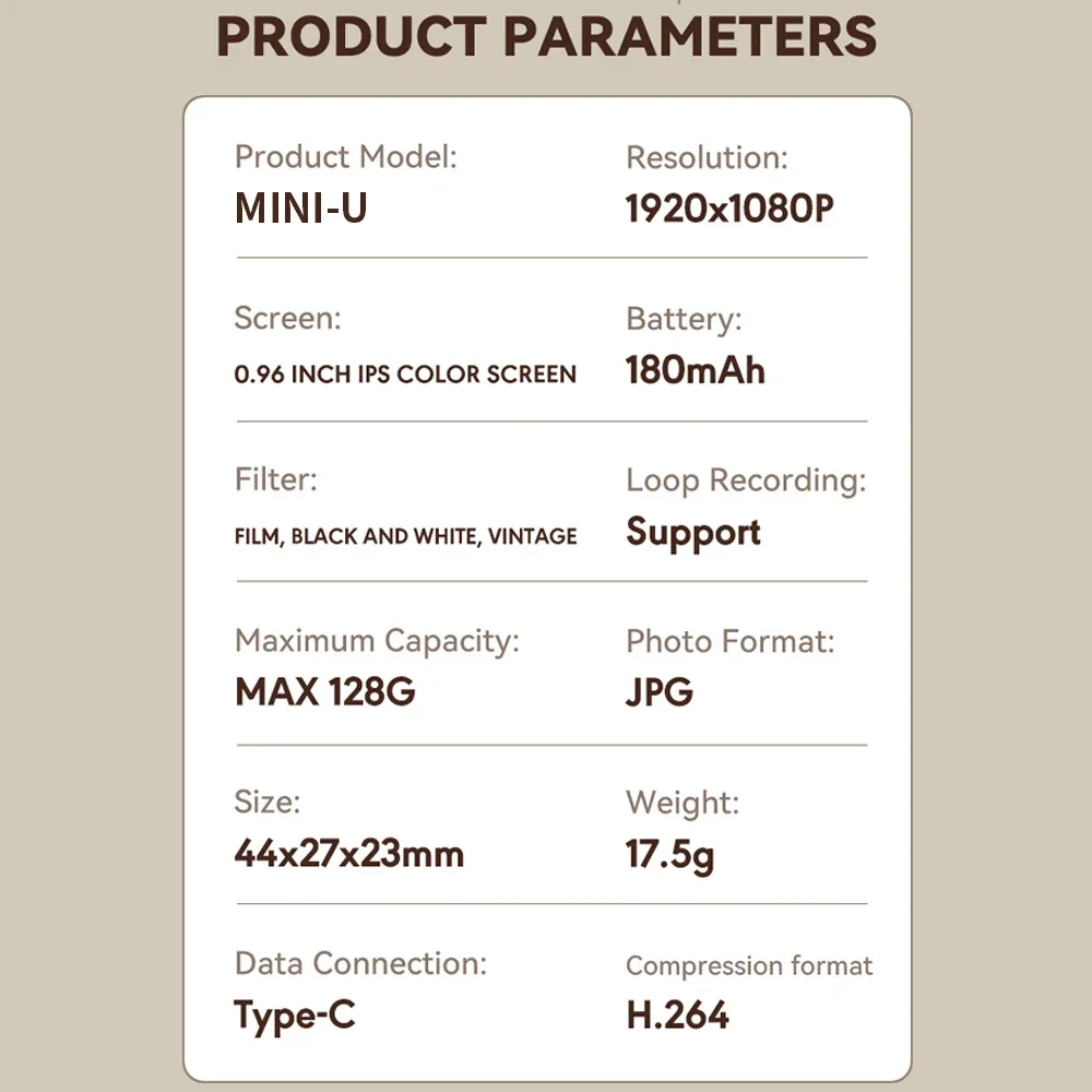 This compact mini camera is easy to carry, making it perfect for on-the-go recording and capturing daily life moments.