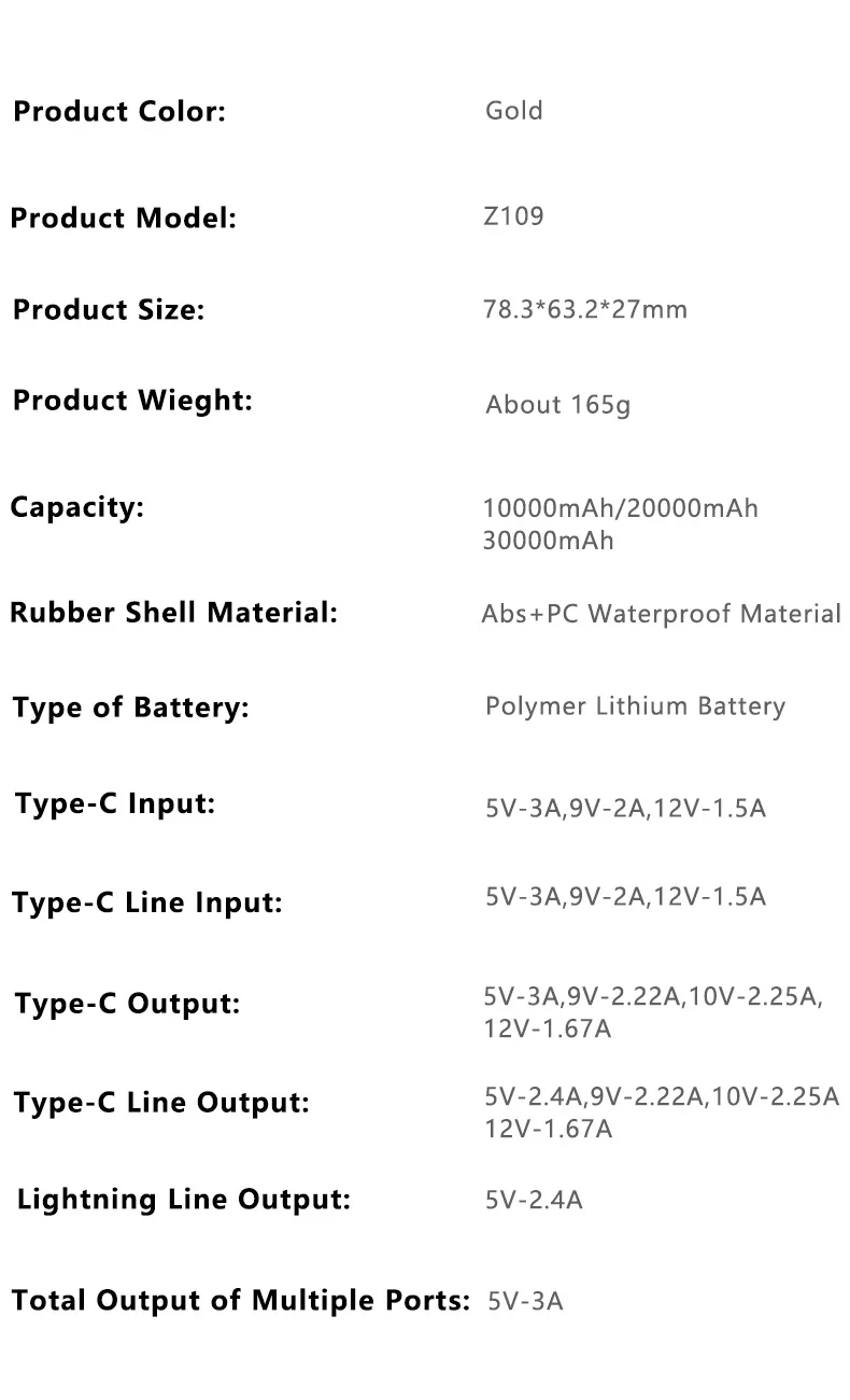 Capacity: 10000mAh/20000mAh/30000mAh/50000mAh/100000mAh