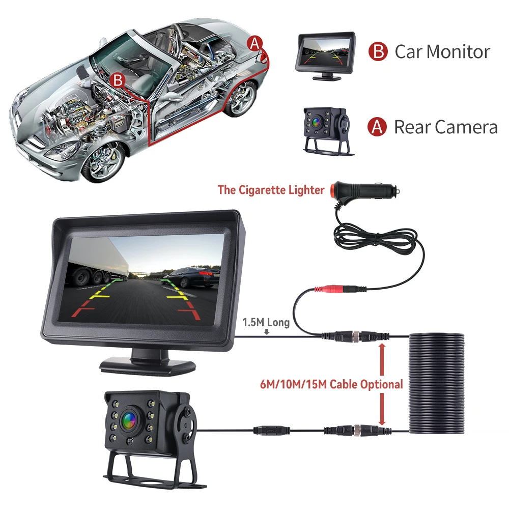 Function Description: This is a Multi-purpose LCD monitor for VCD/DVD/GPS/car Rearview camera.With Delicate design, stable performance, clear picture and excellent color effect. 9V-36V high quality 4.3 inch Car LCD Monitor helps in preventing accidents while driving in reverse by avoiding children, traffic, pedestrians, toys and pets while backing out of the driveway or parking space.