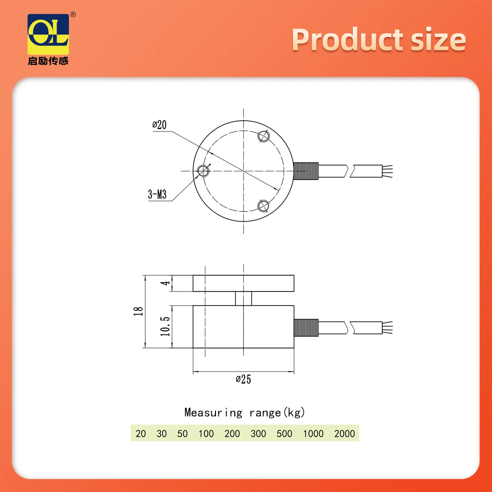 Popular Chinese 25mm Inline Load Cell Miniature Compression and Tension Load Cell for Impact Force Measurement Weighing Sensor