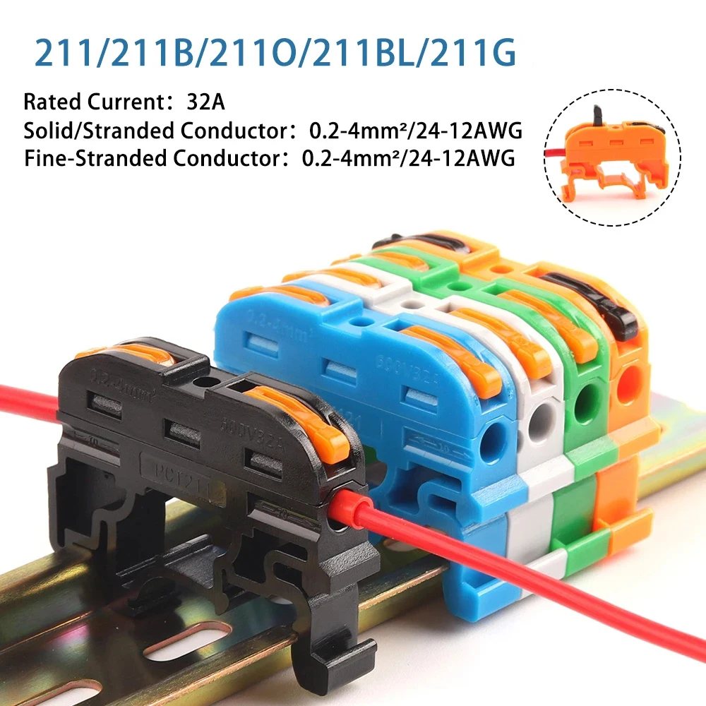 Quick Wire Connector 211 Din Rail Type Press Terminal Instead Of UK2.5B Compact Splicing Conductor Cable Terminal Block SPL