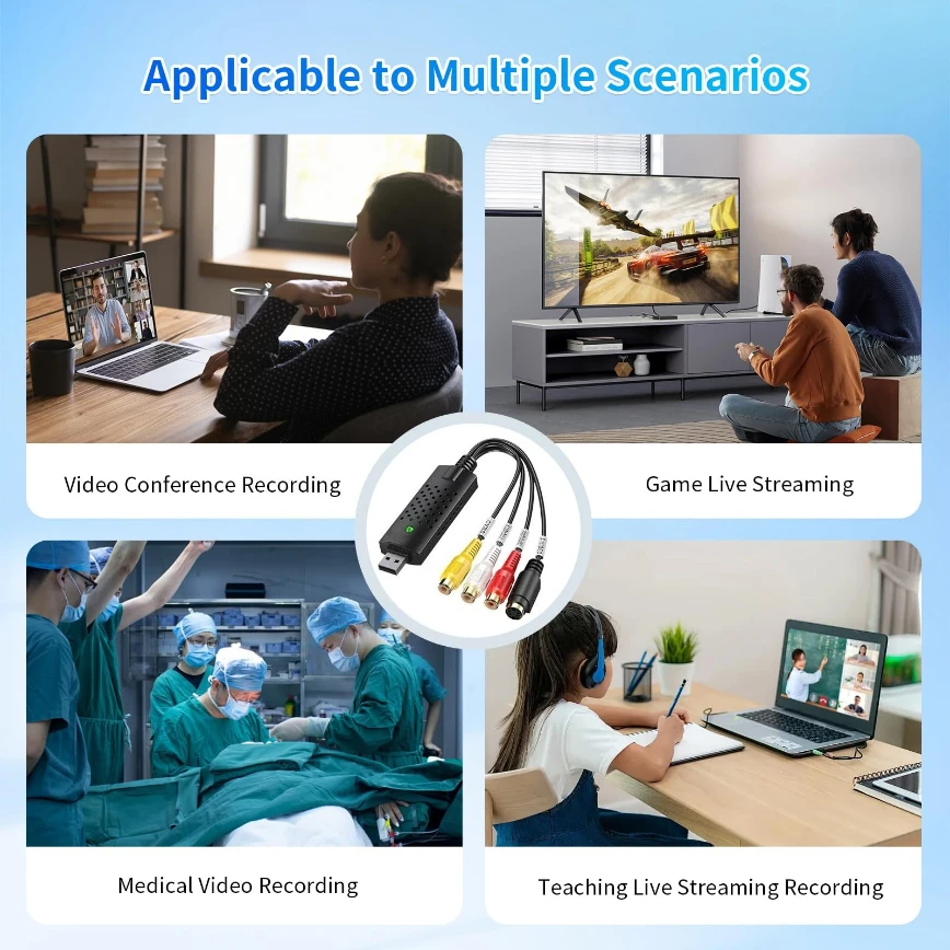 Easy Operation: USB 2.0 interface, plug and play. Connect your analog video recorder to your PC/Laptop for digital conversion. Capture high-quality video and audio without needing external power