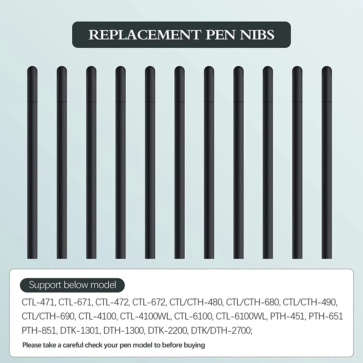 Replacement Standard Pen Nibs Compatible with Wacom Bamboo Intuos CTL471/2 CTL671/ CTH480/680 PTH851, Black Stylus Refill