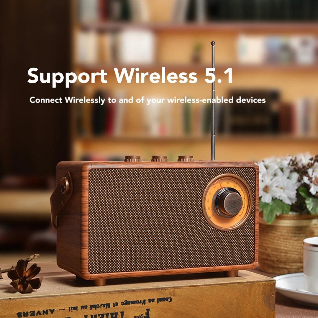 1. Powerful Speaker: This multi-function speaker has three playback modes: FM, Bluetooth -Compatible 5.1, and TF/U disk, and is an essential tool for listening to music. Inspired by vintage gear, it combines elements of home style to give it bold style and solid quality.