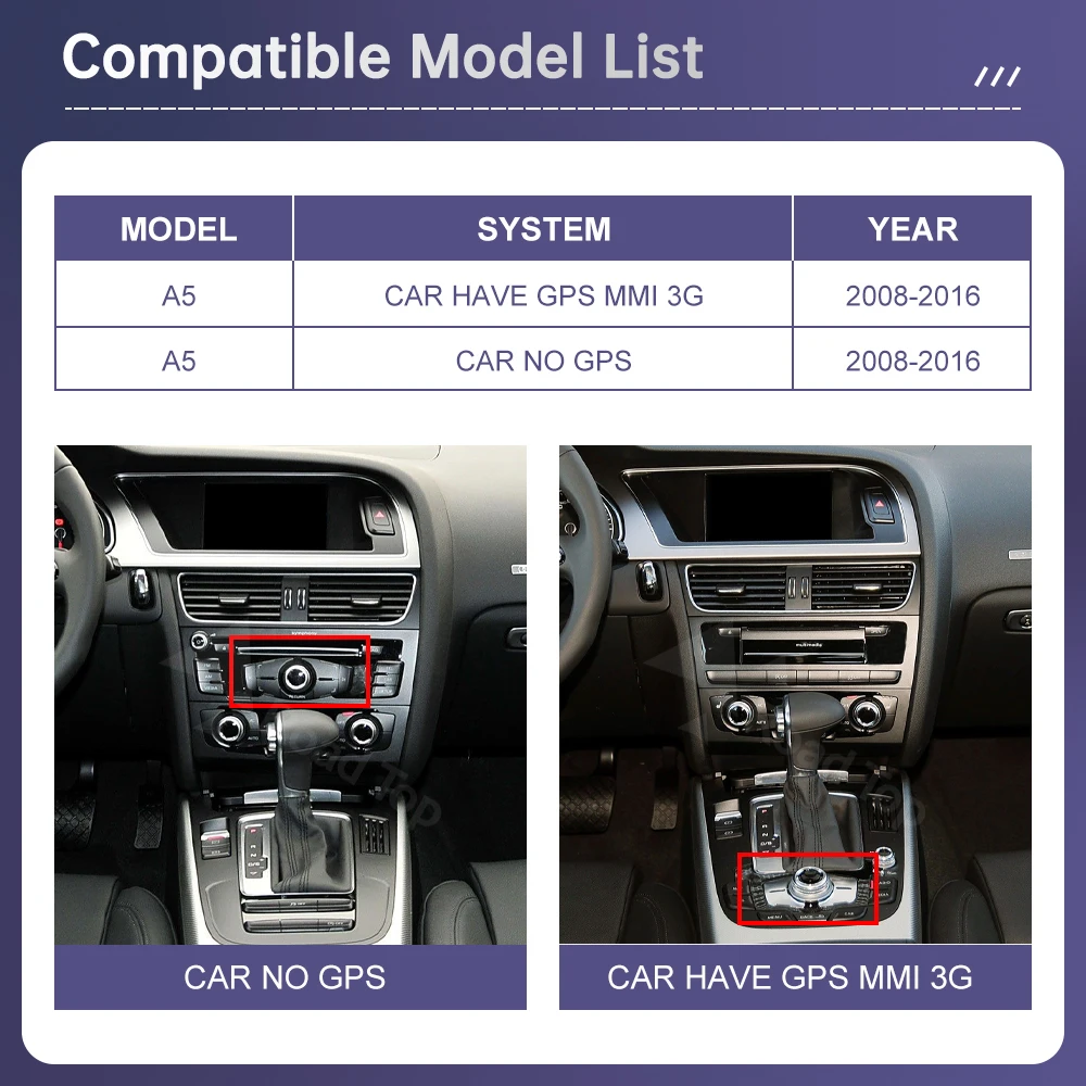 8.8inch 12.3inchCar Multimedia Touch Screen For Audi A5 2008-2016 with Wireless CarPlay Android Auto Airplay Functions