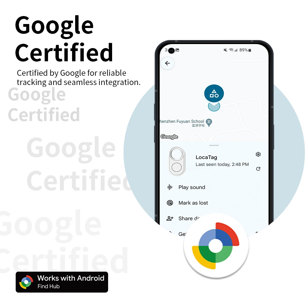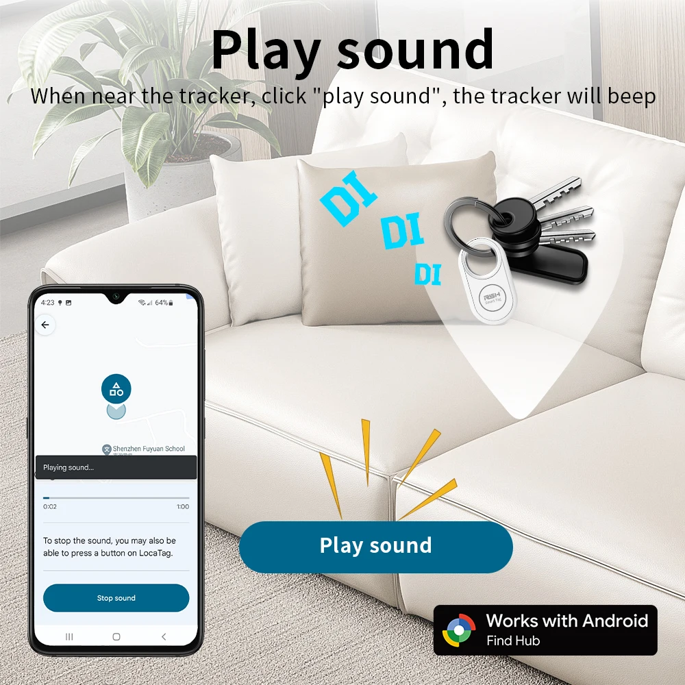 About this item SMART TRACKER FOR ANDROID: The Android version smart tag is a Google Certified location tracker that works with Find My Device (Find Hub) app on Android devices. Attach this android tracker to the items you usually misplace and let it help you find your keys, bag, suitcase, toy, etc. TRACKING TAG WITH SOUND: Within Bluetooth range (60-150 m), you can check the current location and easily find your item by activating sound via Google Find My Device (Find Hub) app or voice commands. The tracking tag will ring loud enough to help you locate it. REMOTE LOCATION UPDATES: As long as the tracker tag is covered by the Android network (surrounded by Android devices), you will continue to receive location updates even when it’s left behind. You can also share the location with your trusted ones if necessary. Sharing Mode and Lost Mode: You can share this Google air smart tag with your family andfriends to increase security. You can also set a lost mode, where when you lose the air tracker tag.the information you set can help others find you and increase the chances of finding your tag DATA SECURITY GUARANTEED: Unlike unknown apps that may collect your data, the Google Find My network is encrypted and anonymous. The location data and history of your belongings are not stored on the tracker and cannot be known by Google systems, ensuring your data security.