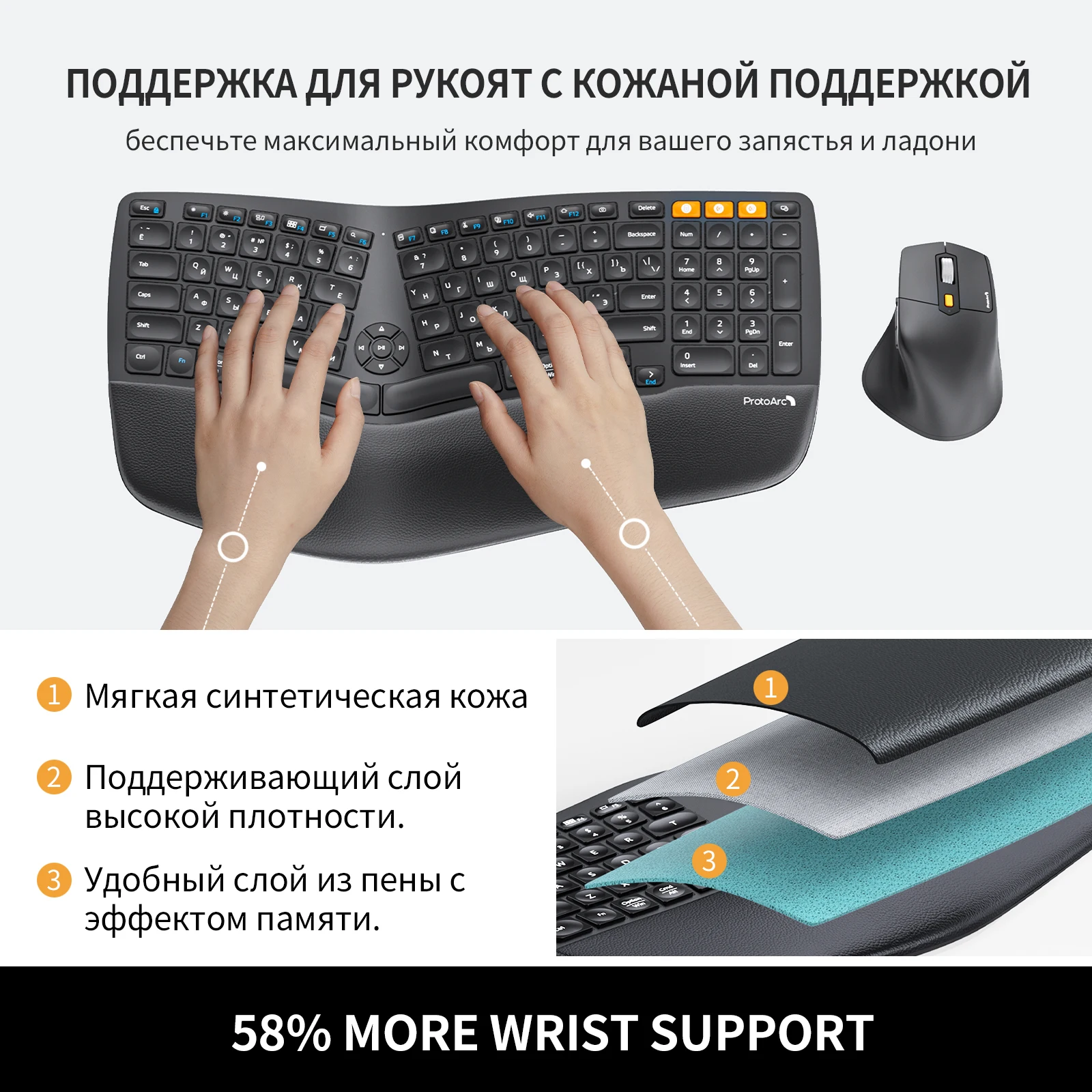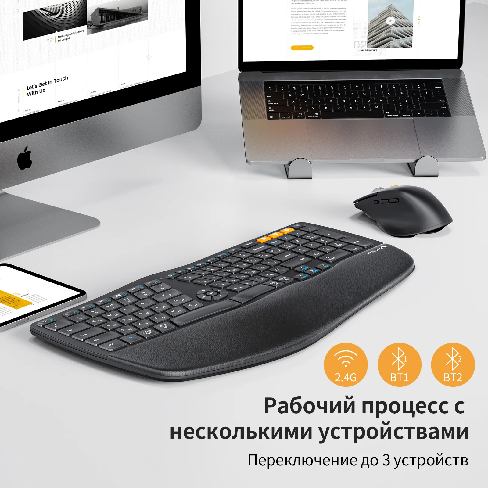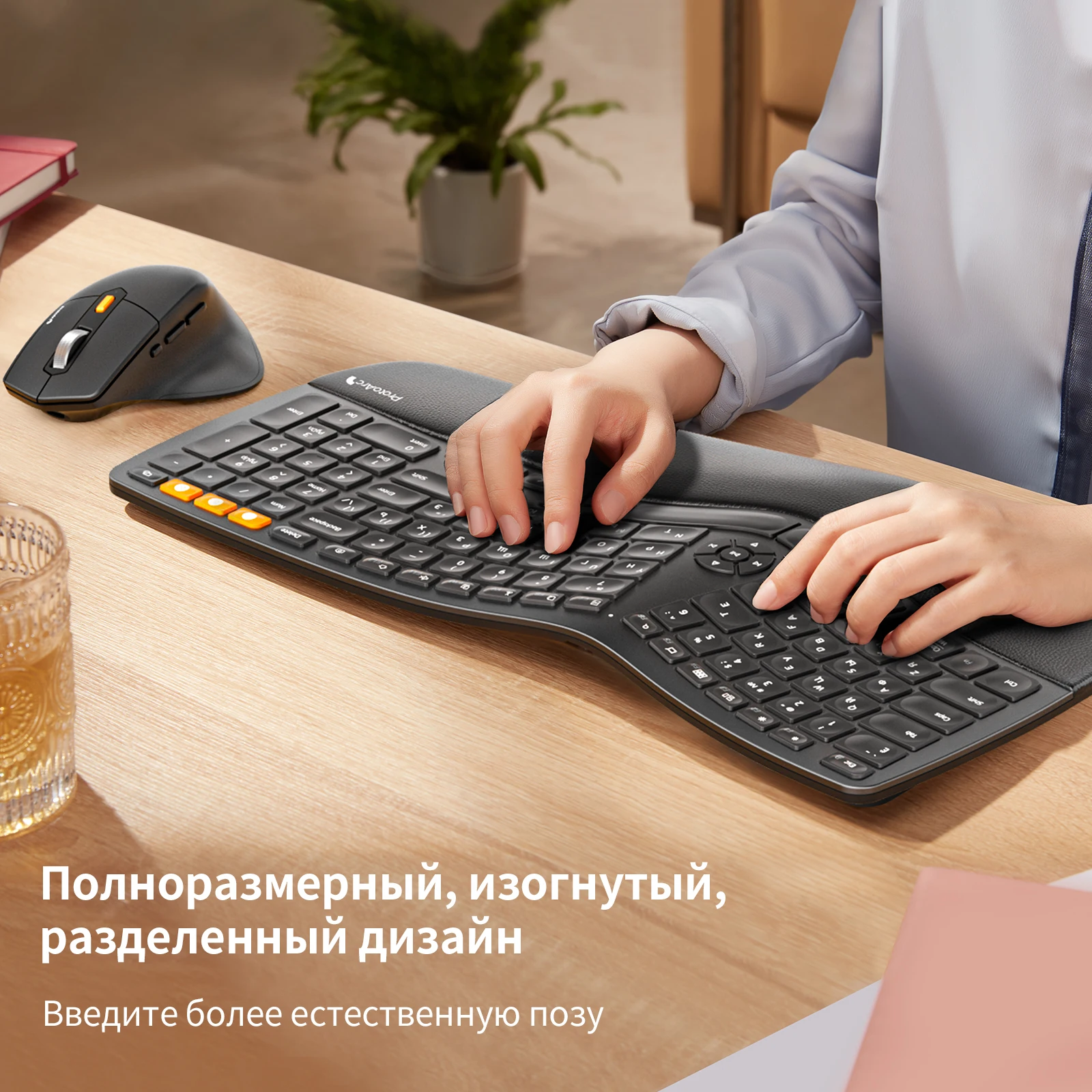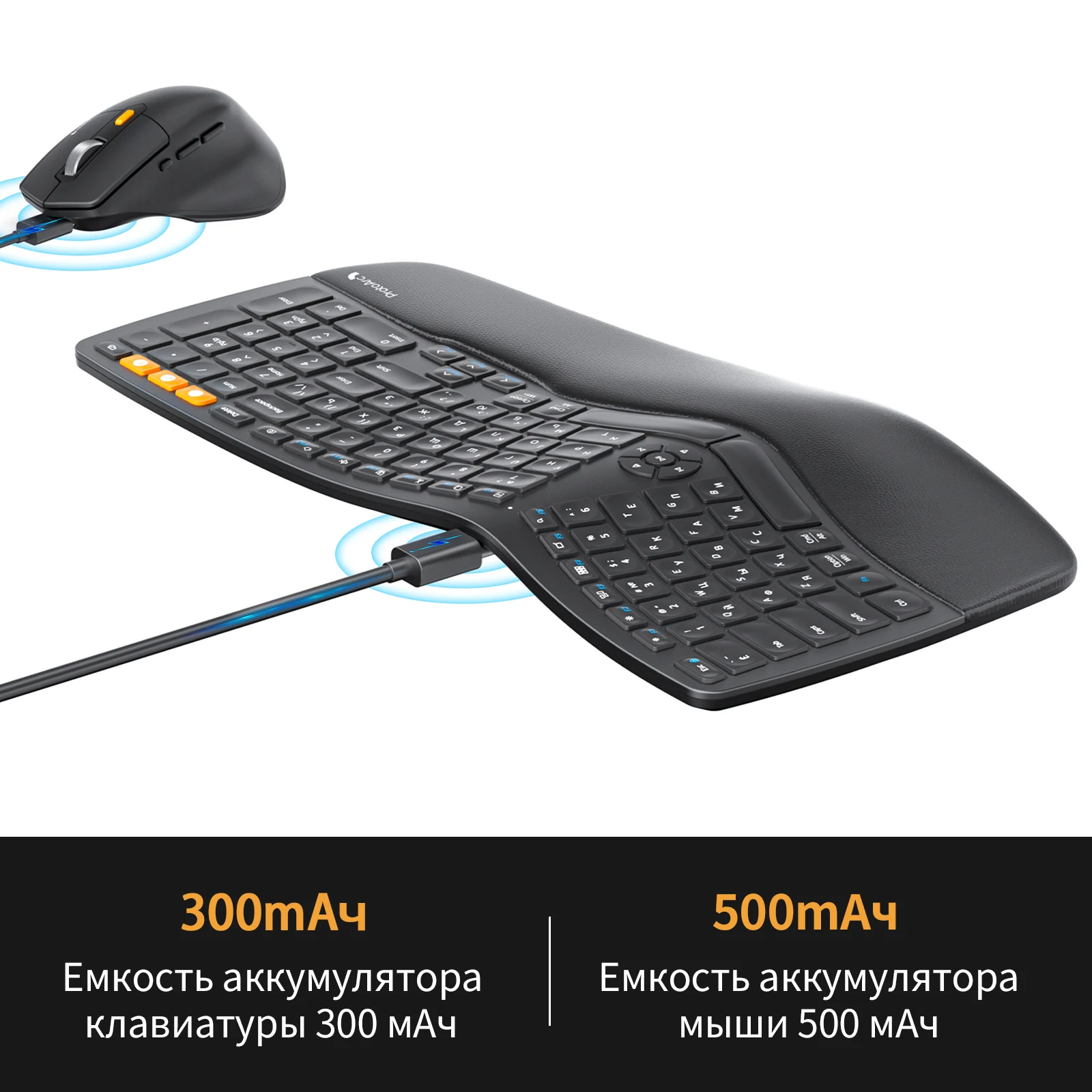 Russian Bluetooth Wireless Keyboard and Mouse Combo Split Ergonomic Keyboard for Windows Mac Android Rechargeable Mice
