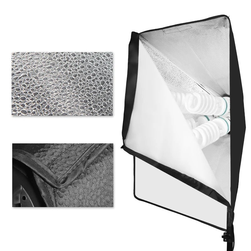 50×70 softbox:White foldable soft cloth,High quality reflective particle.Safe and non-toxic polyester fiber,4 flexible connecting rods.