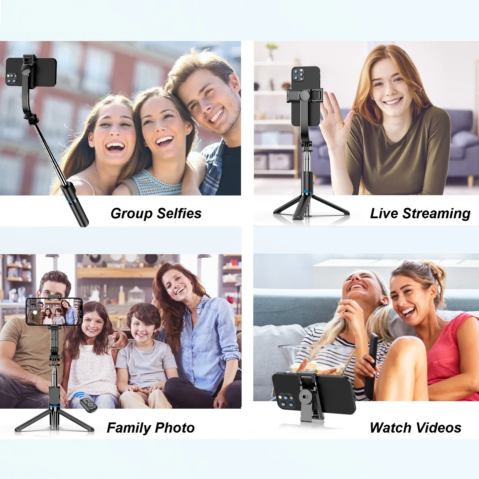 【Detachable & Adjustable Phone Holder】The phone holder clip can be detachable as a phone stand for video calls and watch videos. Combined with 360° rotation phone clip and 225° rotation head, it supports to take vertical and horizontal photos by simply rotating the angle, and allows you to capture a broader landscape or take the most fantastic photo with your family.