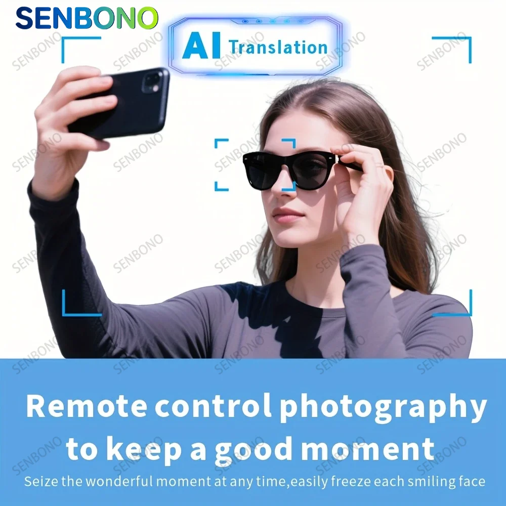 SENBONO E13 AI Translation Smart Glassess Glasses Bluetooth Call Camera Control Headphones Sunglasses for Sports Driving Cycling
