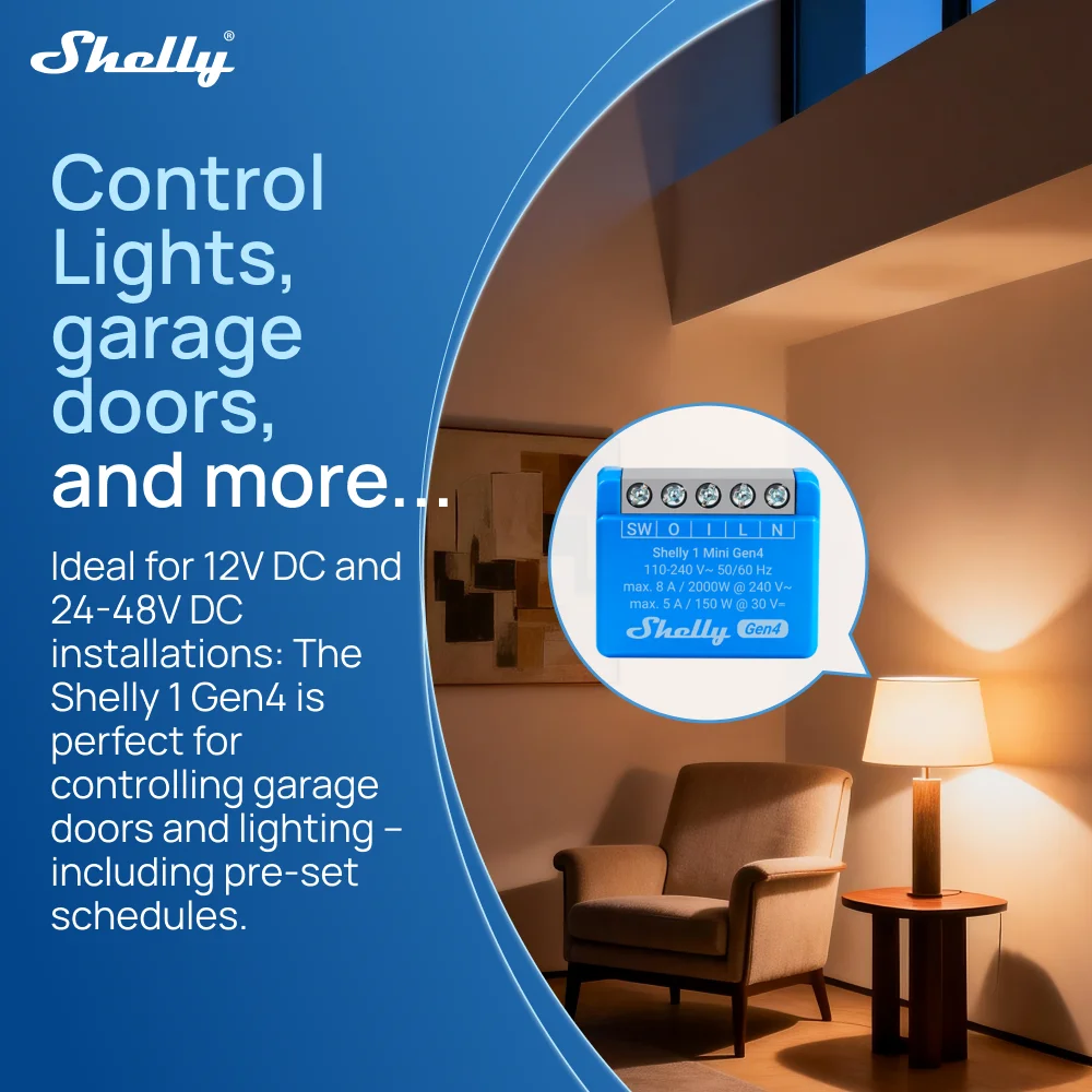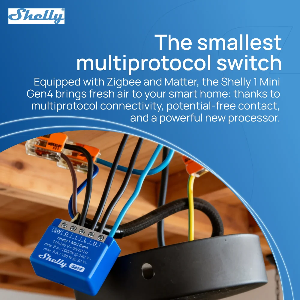 Shelly 1 Mini Gen4 Zigbee Dry Contac Matter Smart Home WiFi Smart Garage Door Smart Life Control Alexa Google Home HomeKit