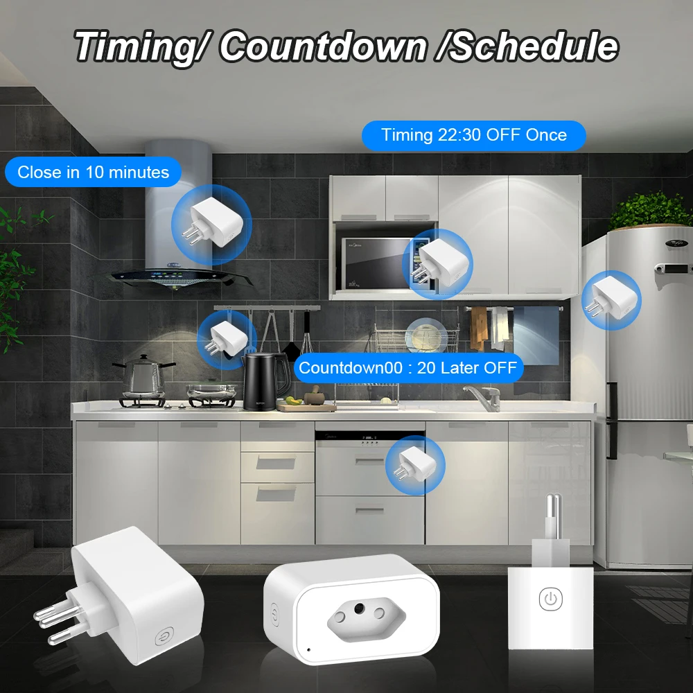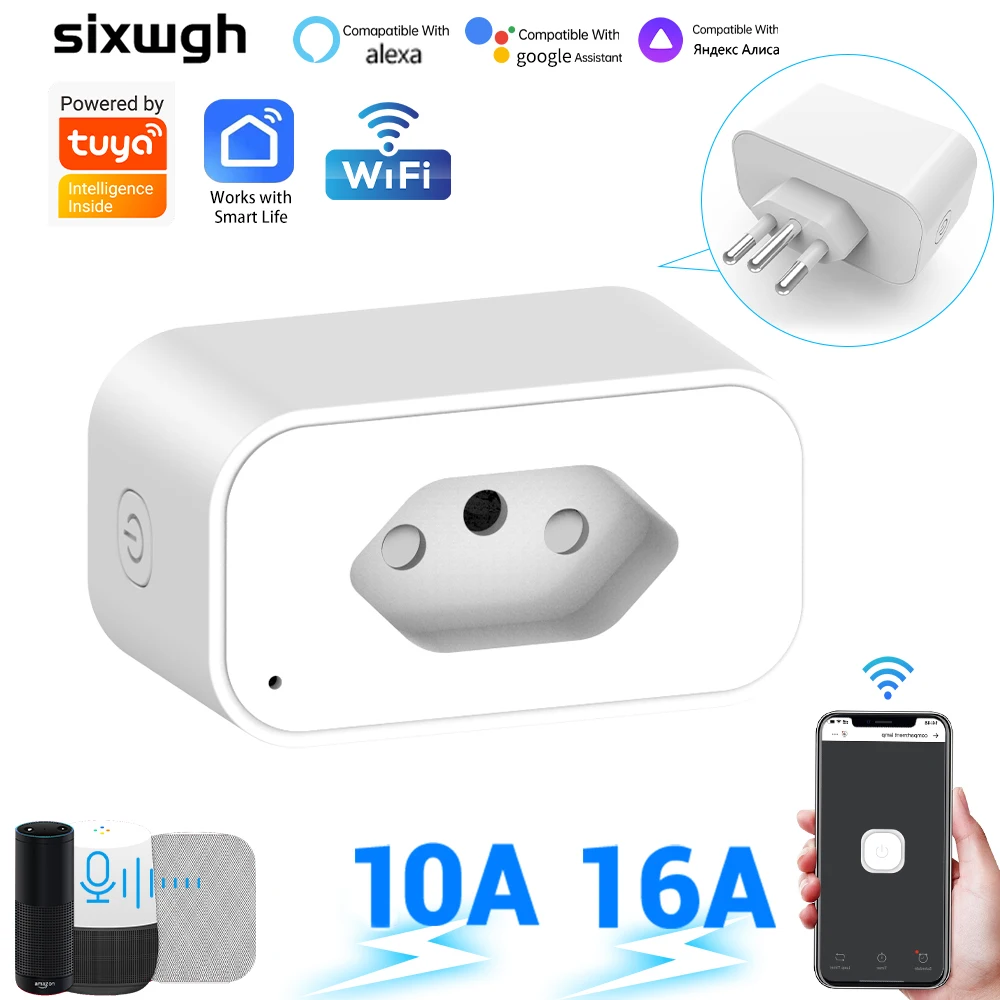 Sixwgh Brazil Standard Smart with Metering Socket 16A Tuya WiFi Remote Control Supports Alexa/Google Home Overload Protection