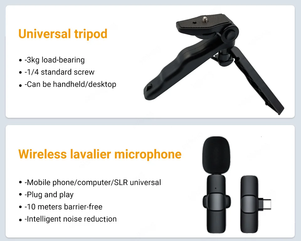 3. Universal tripod: 3kg load-bearing, can be held by hand or placed on the desktop.