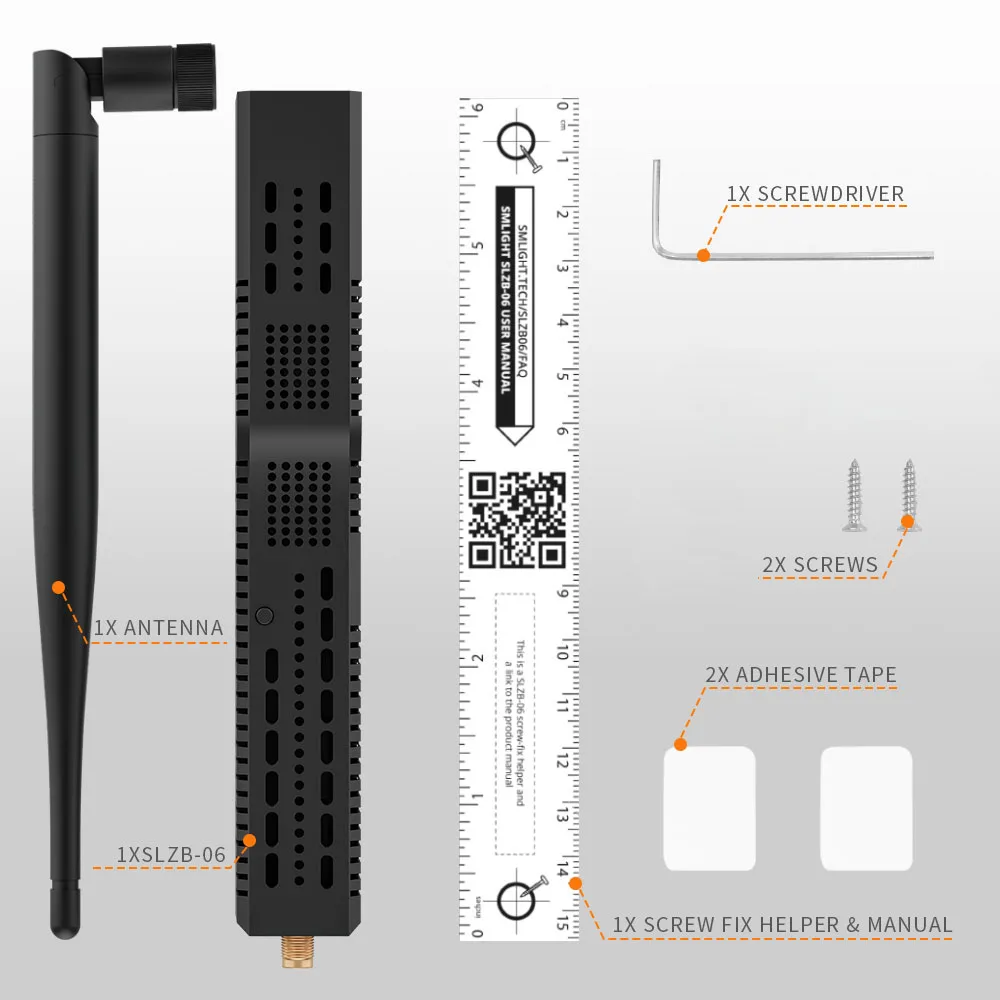✅ Rich packing: Zigbee Coordinator, +5dB antenna, screws and screwdriver, adhesive tape, Type-C adapter, manual.