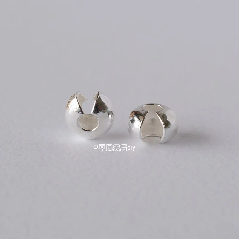 solid 925 sterling silver crimp cover beads, Round Covers Crimp End Beads Stopper Spacer Beads For Diy Jewelry Making Findings