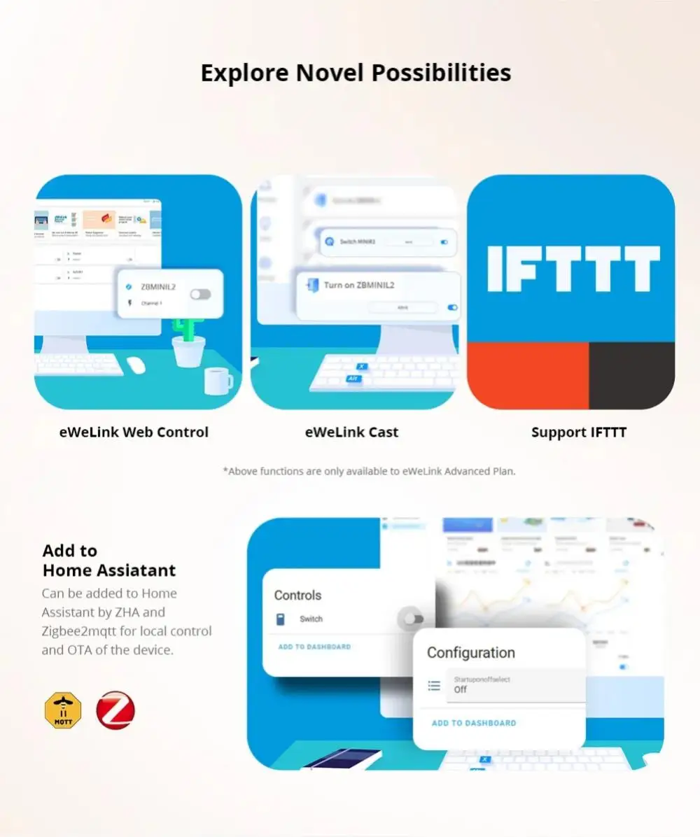【Simple and Reliable】As a Zigbee 3.0 switch, ZBMINI Extreme can combine with Zigbee hubs to form a home LAN,No longer worry about no internet, you are able to freely control the appliances normally even the light is as low as 3W, no anti-flicker module is required.