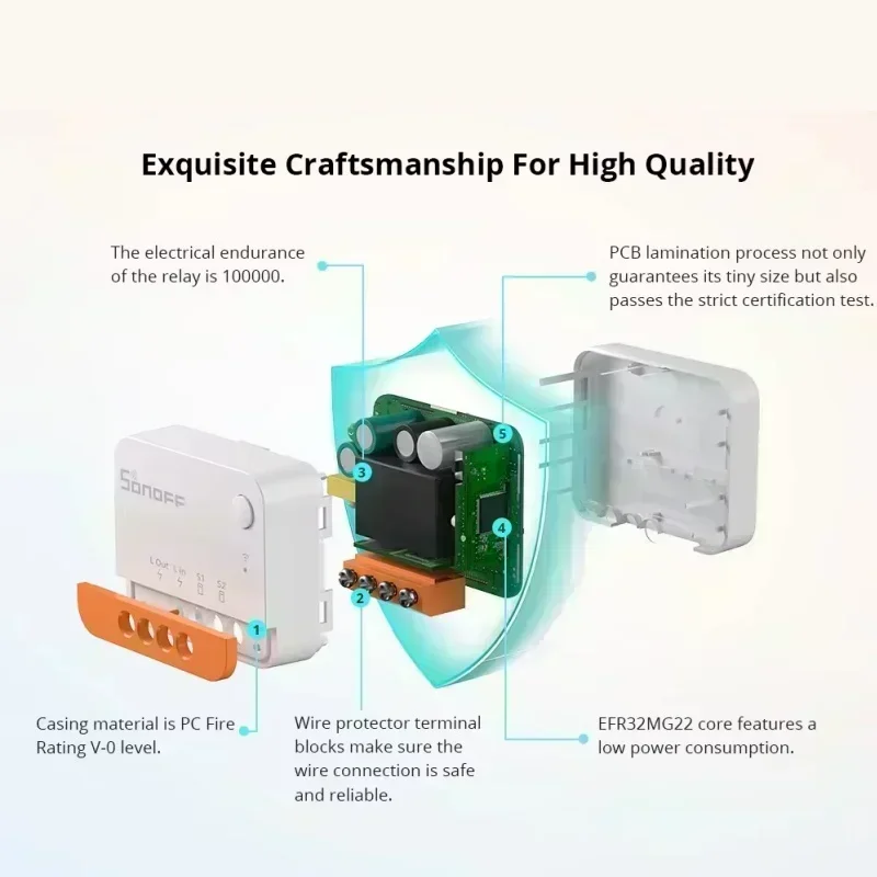 SONOFF ZBMINIL2 is 40% smaller than ZBMINIL, which will make it take up less space in the mounting box, suitable for most size boxes, and leave more space for DIY modification. Although ZBMINIL2 is smaller, it has many functions, no neutral wire required, two-way control, smart timer/ scene, supports two types of wall switch,etc