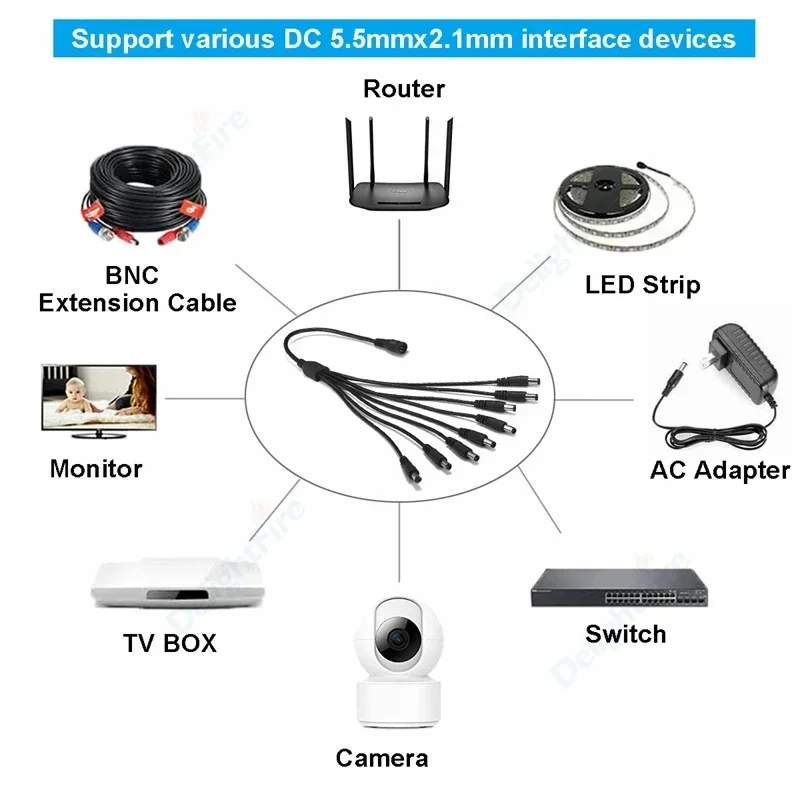 Splitter DC Power Cable 1 To 2/3/4/5/6/8 Way 5V 12V Male Female 5.5×2.1mm DC Plug Extension Wire For LED Strip Light Camera CCTV