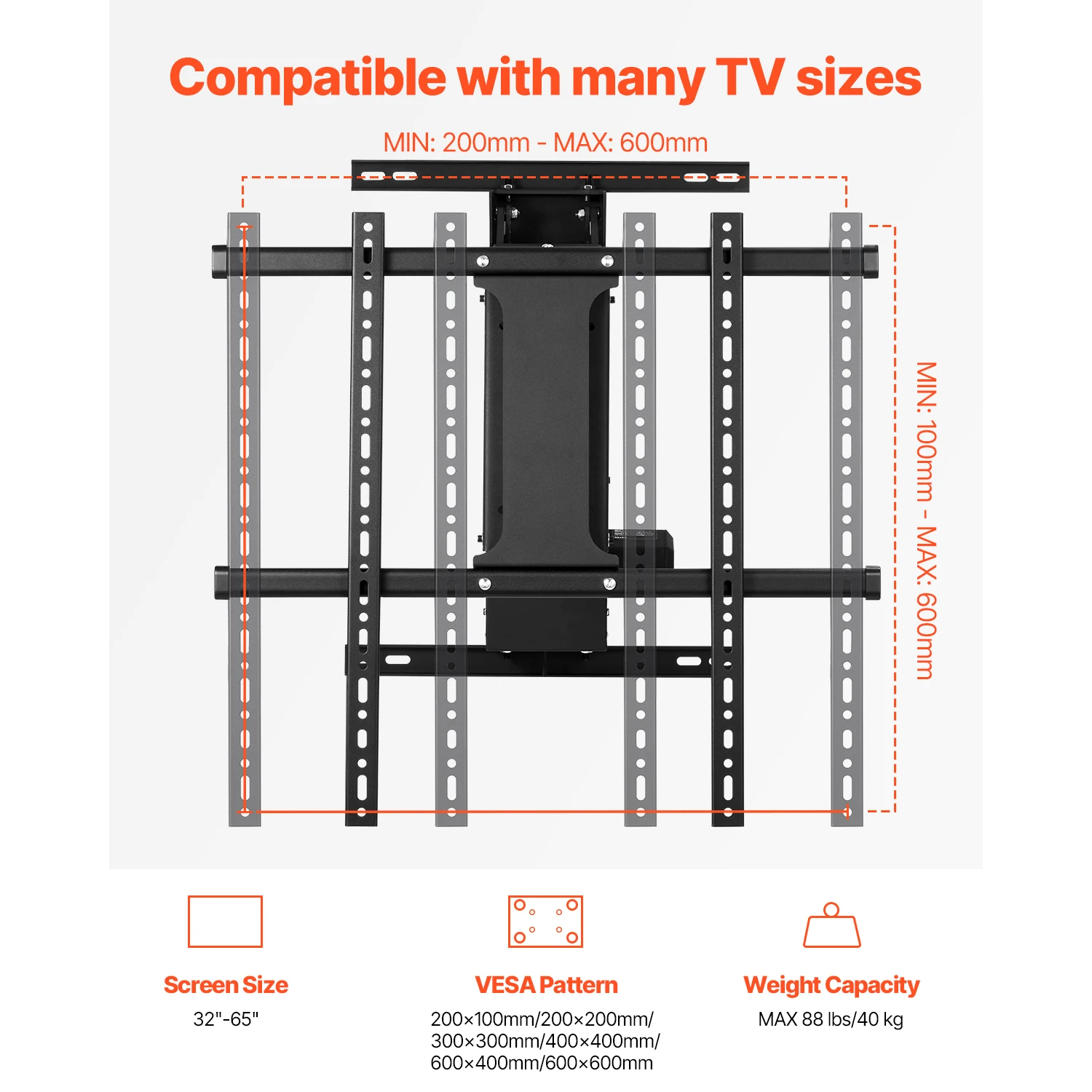 SucceBuy Motorized TV Wall Mount for 32 to 55/65/70 Inch Adjustable TV Mount Bracket w/ Max VESA 24 x 16/24 in Up to 88-132 lbs