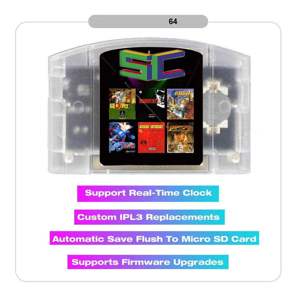 SUMMER FALSH 64 SC64 Open Source N64 3000 in 1 Game Cartridge For Nintendo 64 Game Card Compatibility Support 64DD Games
