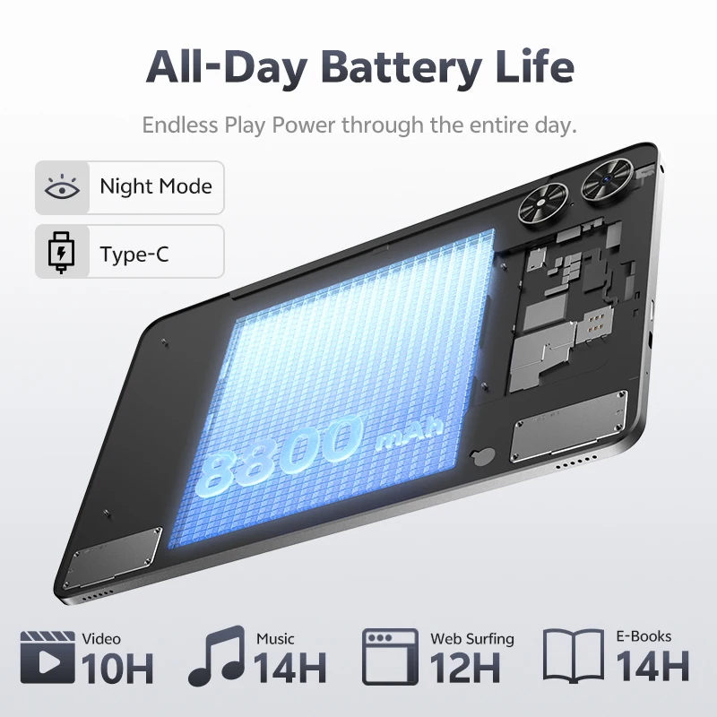 8800mAh Battery (Support 5V / 2A 10W Charging), This Tablet Guarantees Long Hours of Usage Without Needing Frequent Charges.