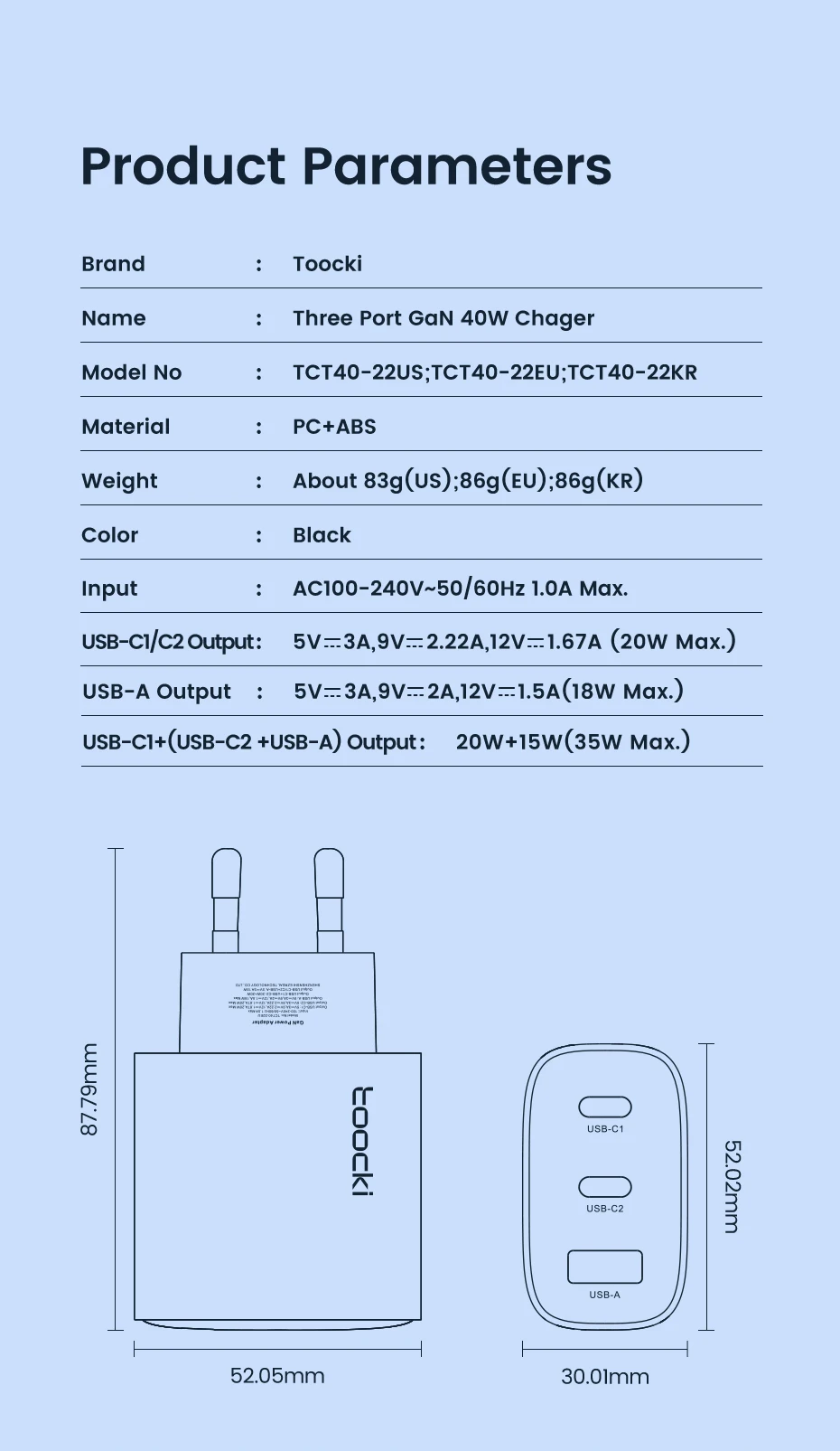 Toocki 40W Charger GaN Phone Charger Fast Charging USB Type C Charger for iPhone 15 14 13 12 Pro Max iPad Samsung S24 S23 Xiaomi