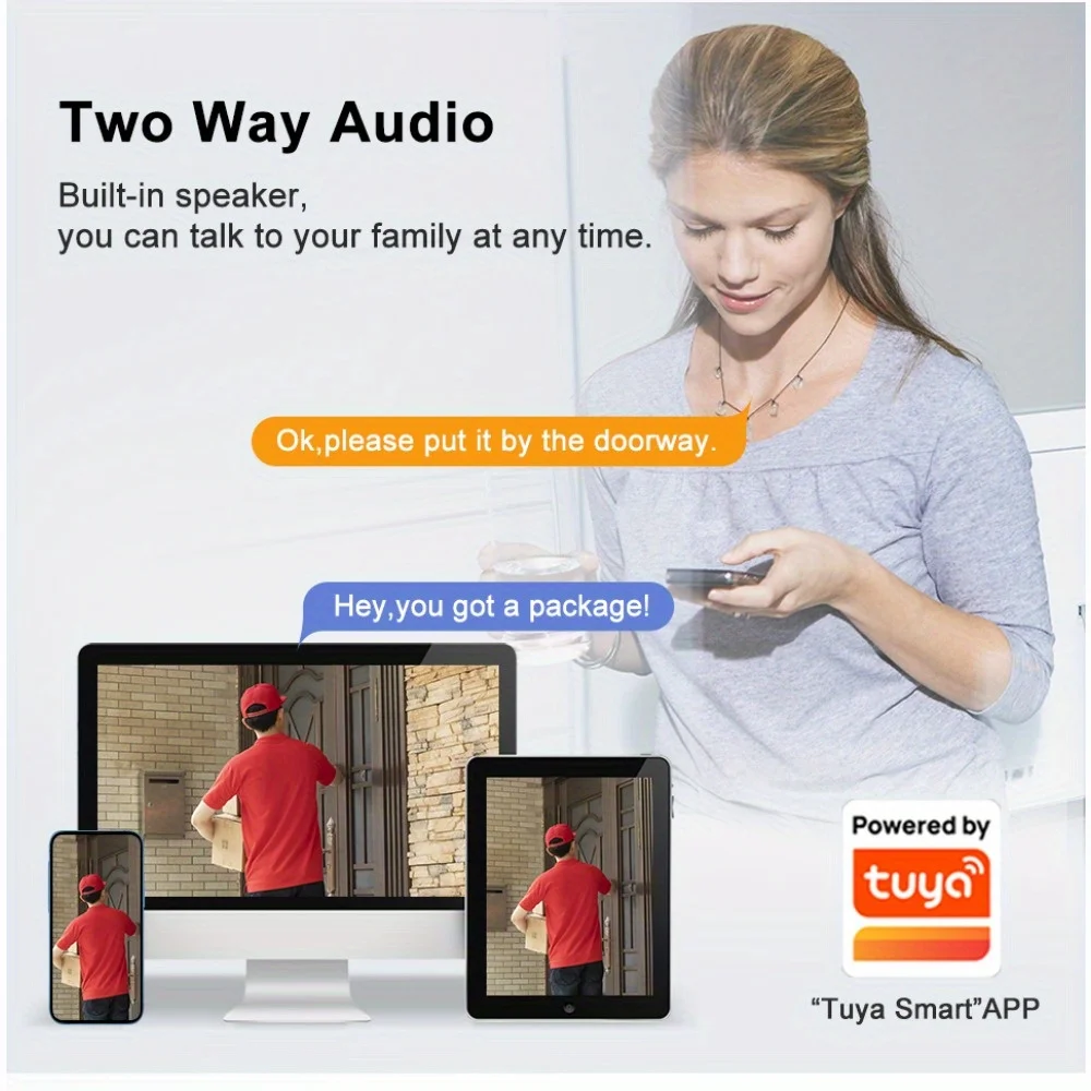 Tuya 3MP WiFi wireless Smart video doorbell Outdoor doorbell camera automatically sensing PIR motion detection 5200MA waterproof