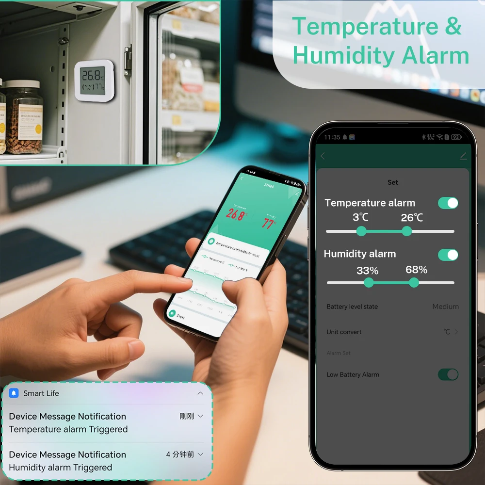 3. The sensor cannot set alarm. The alarm function is set on the APP.