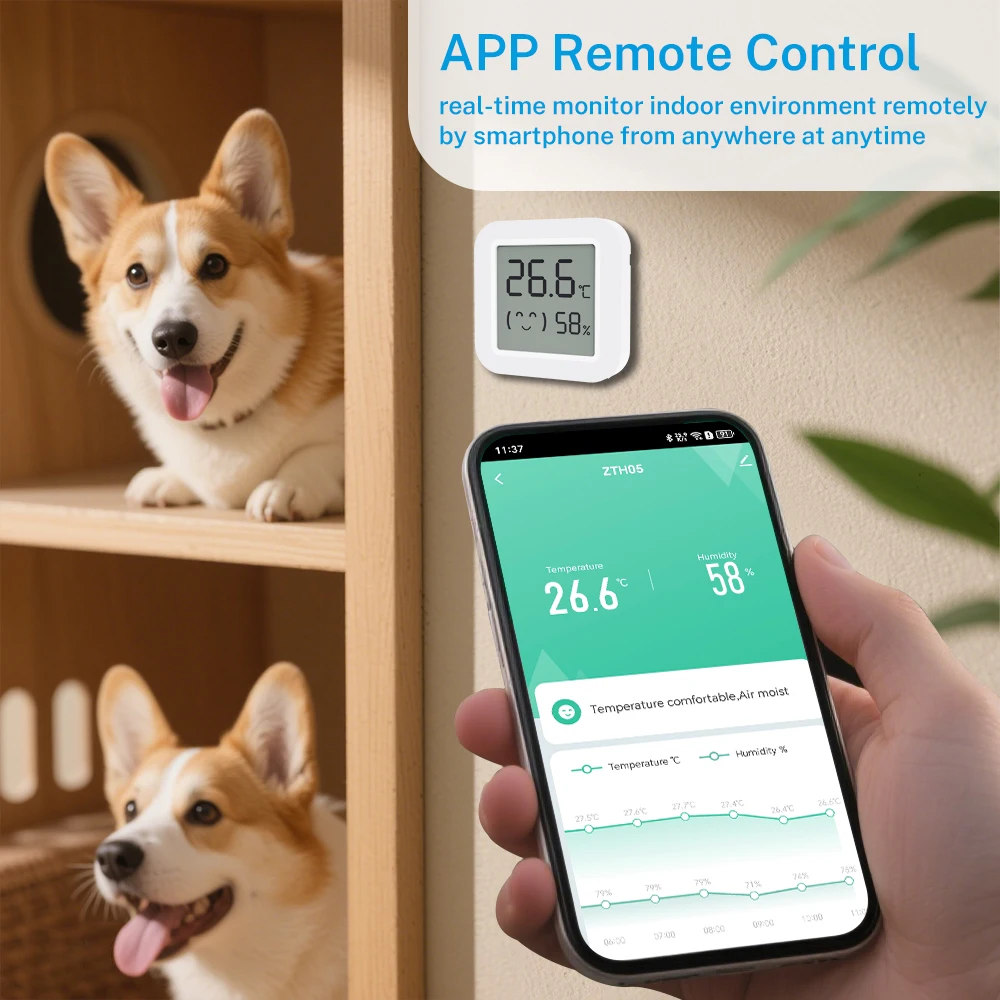 Monitor indoor environment temperature and humidity,creating a comfortable home living environment.