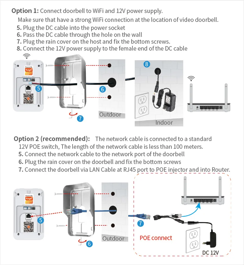 Tuya Smart 1080P Doorbell Camera WiFi Wireless IR HD Video Door Bell Phone Intercom with RJ45 to POE Optional Lock Unlock Module