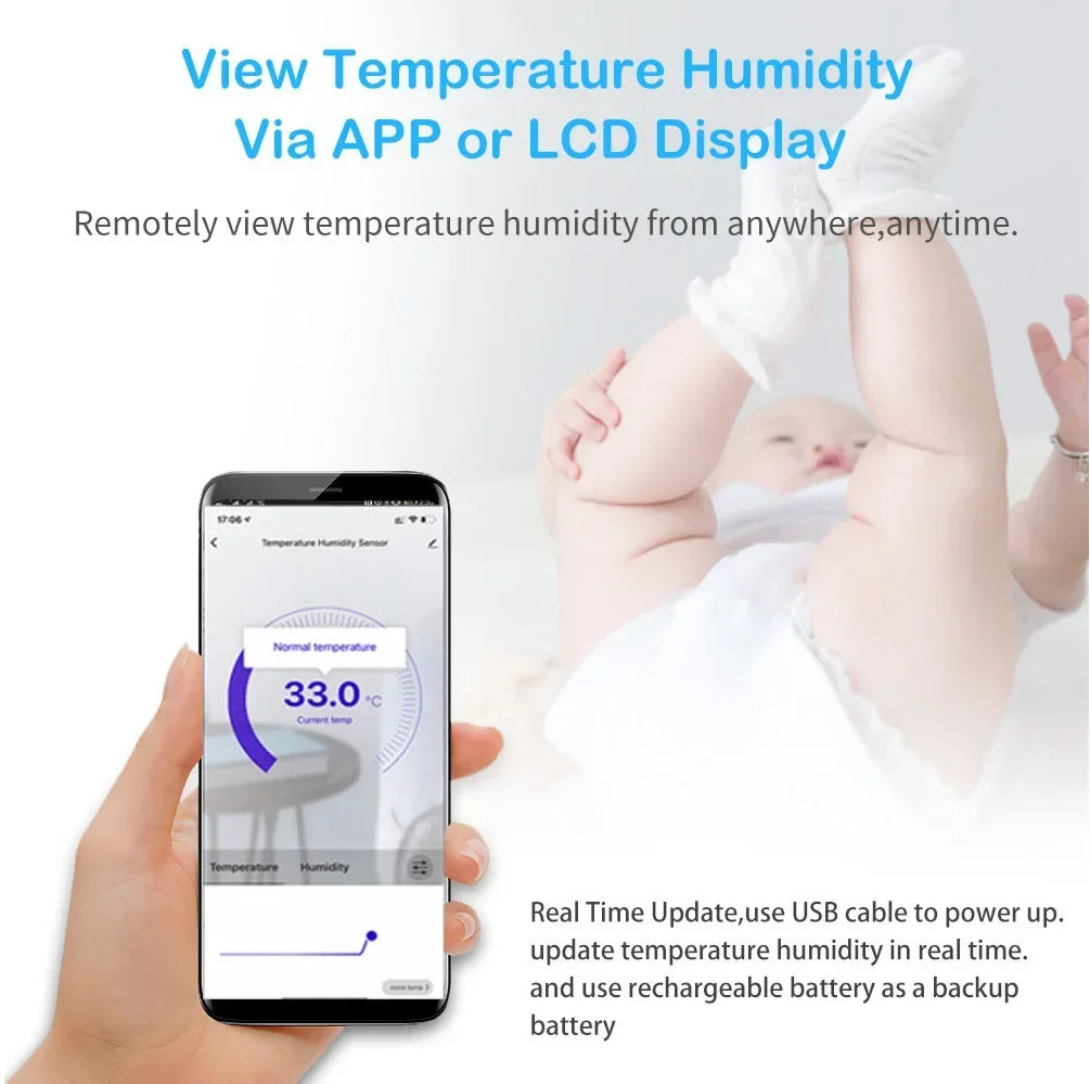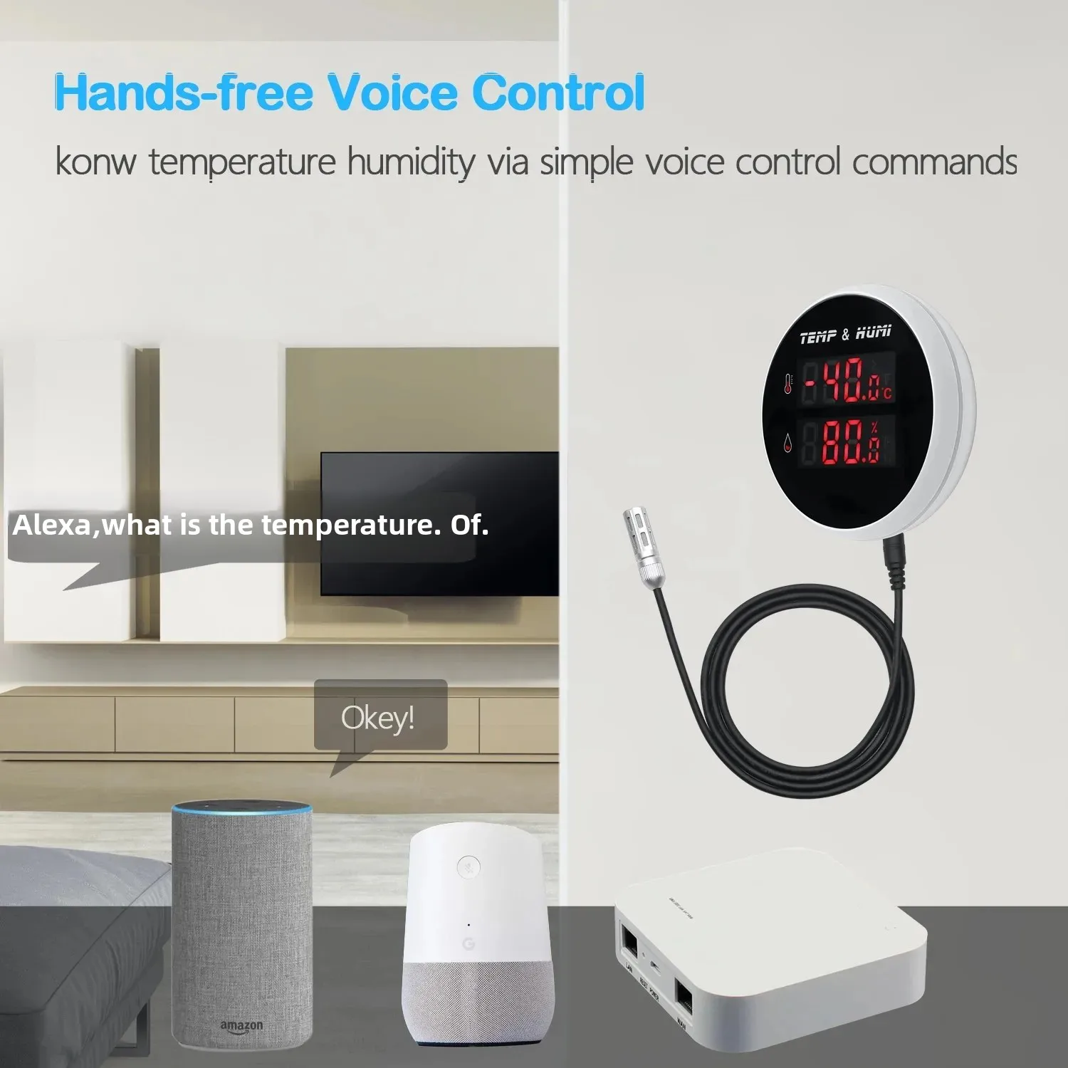 Work with Amazon Alexa, Google Home:After connecting Amazon Alexa and Google home, you can know the current temperature humidity by voice.