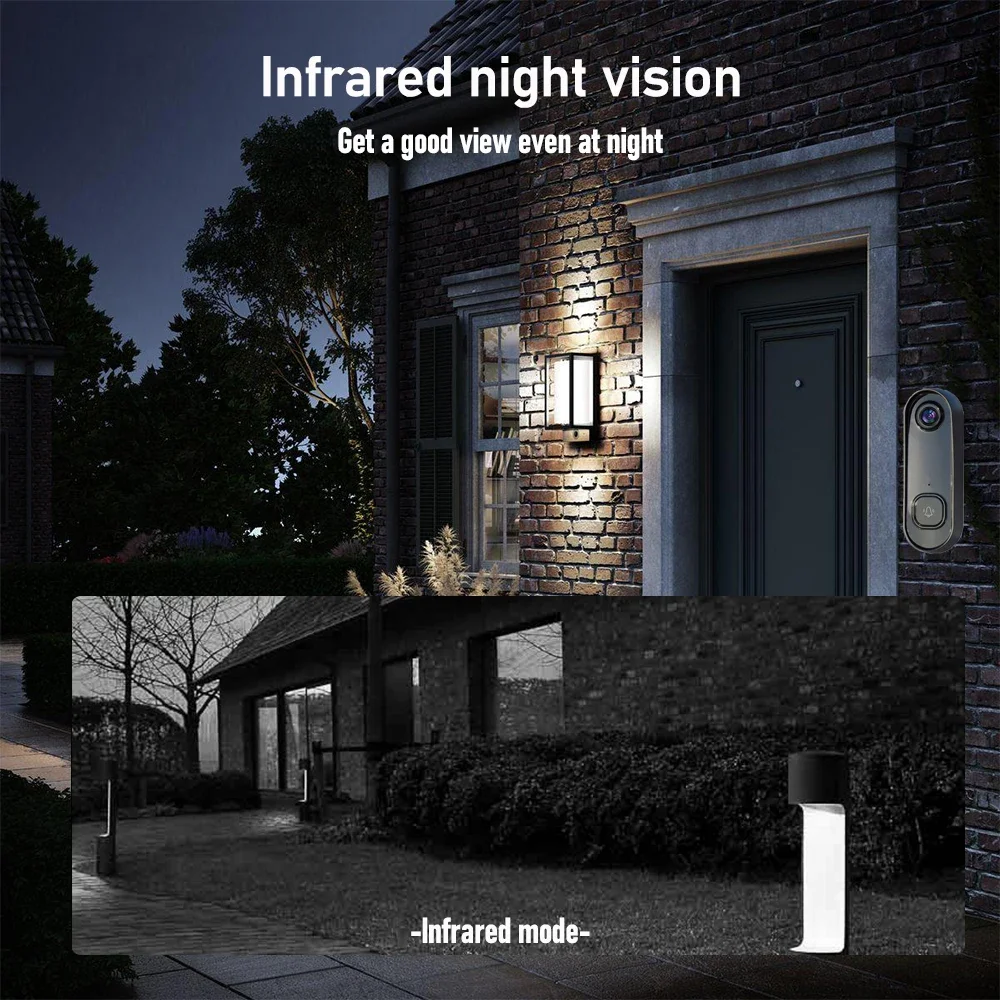 The video doorbell has a built-in speaker and microphone. You can have a real-time communicate with your visitors or select a pre-recorded voice message for quick replies, You can also warn strangers to leave that have not received your invitation. Protect your family whether you are at home or not.